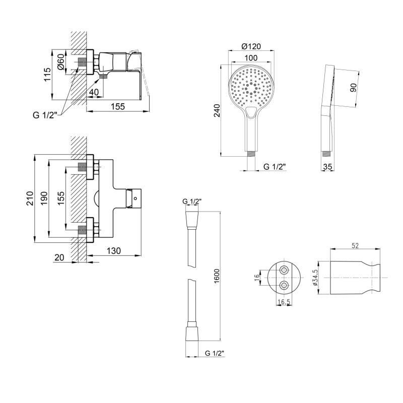 Акционный набор Qtap: Смеситель для душа Lipno QTLIPNO4023101CB +Лейка Rucni QTRUCA120O3KBB+Шланг Hadice QTHADPVCSQ160B +