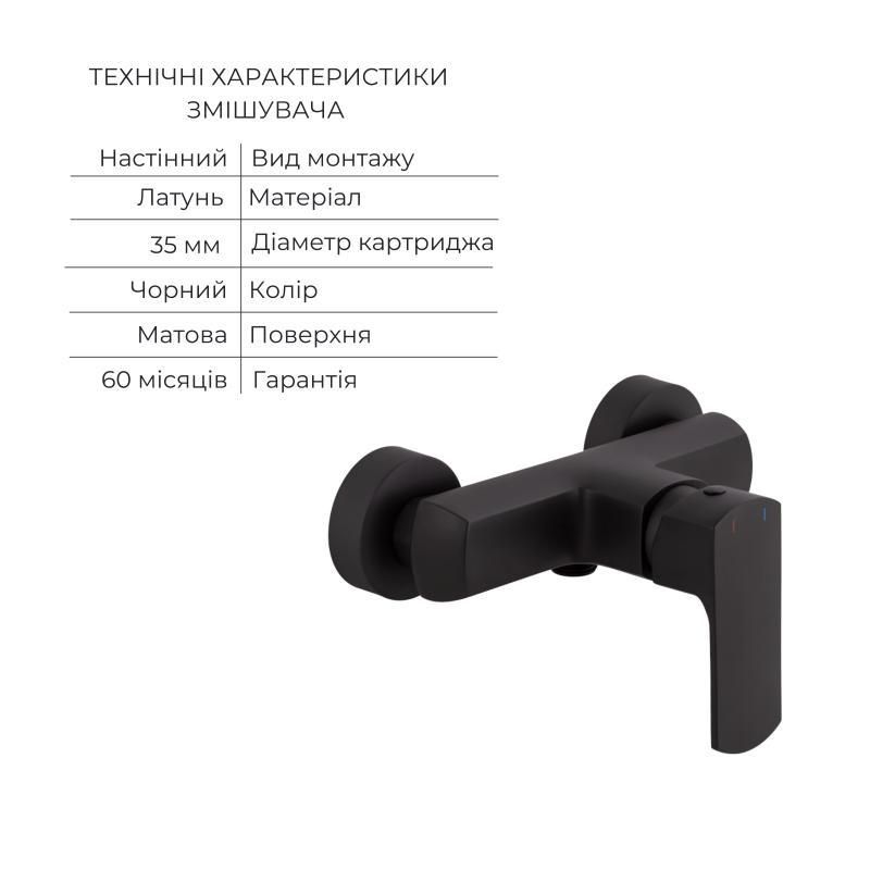 Комплект Qtap Slavonice Black Matt: Смеситель QTSLA266BLM45908 + Держатель QT829910842854OB + Шланг
