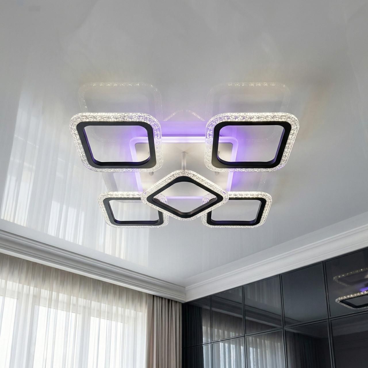 Ищете современное и технологичное освещение для спальни? Модель Diasha AS8170/4+1BK — популярное решение для интерьеров в Киеве. Люстра оснащена пультом, диммером и сменой цветовой температуры, что позволит адаптировать свет под ваши задачи и повысить комфорт.