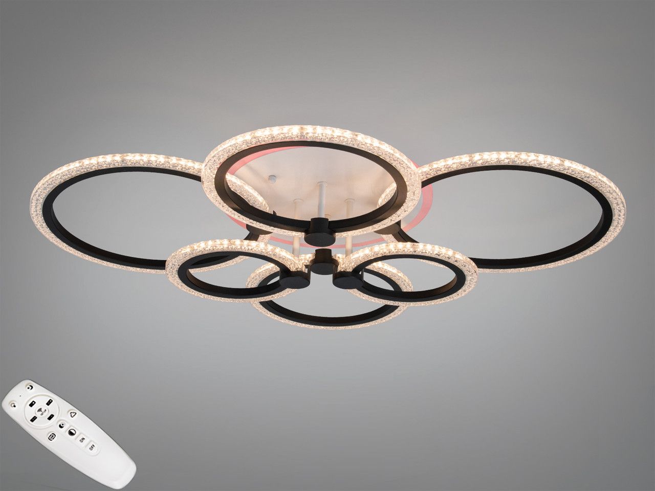 Лед люстра кольца фактурный акрил Diasha 140W до 20 м² цвет Черный D8748-600+400BK