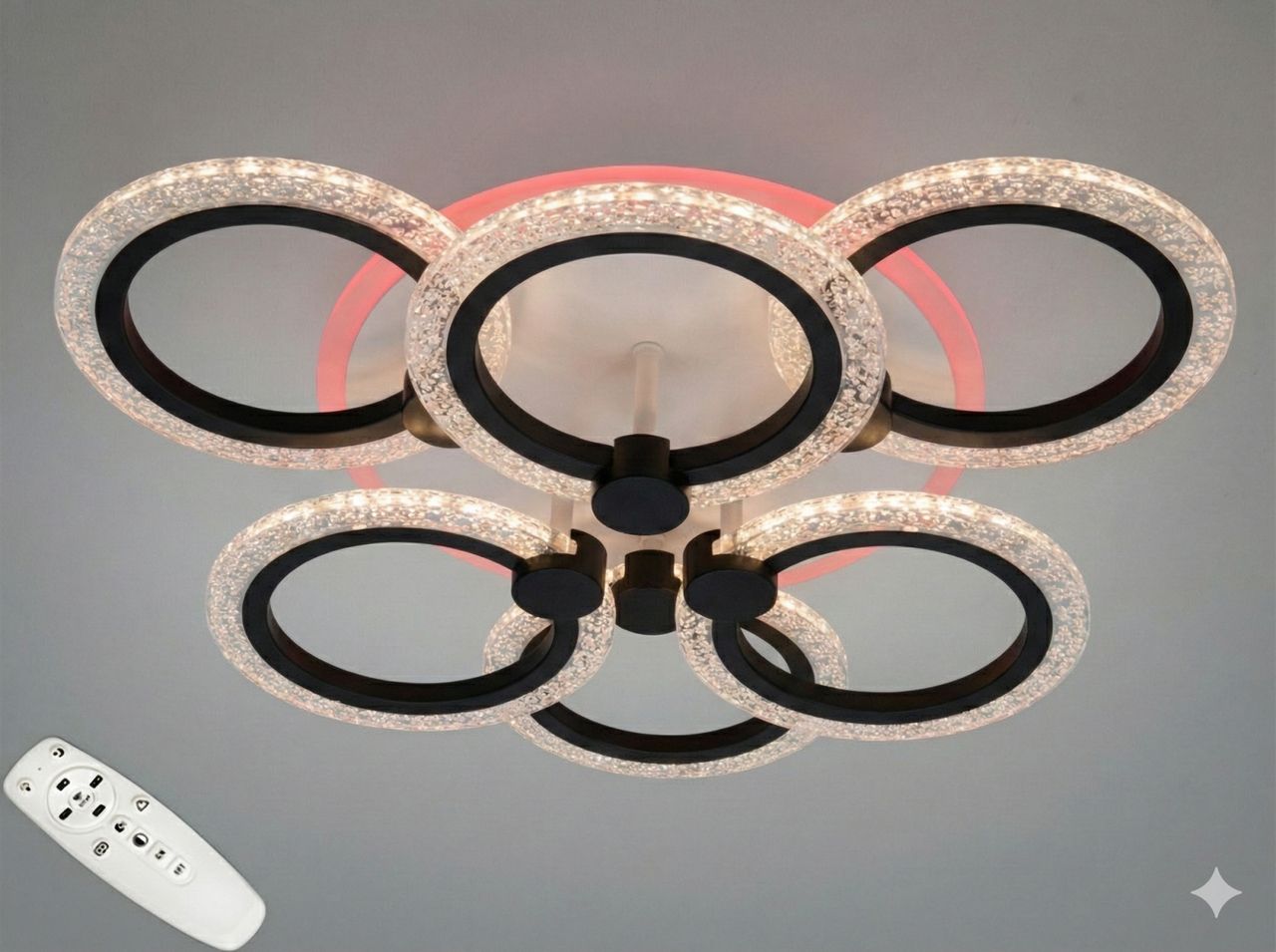 Лед люстра кольца фактурный акрил Diasha 140W до 20 м² цвет Черный D8748-600+400BK
