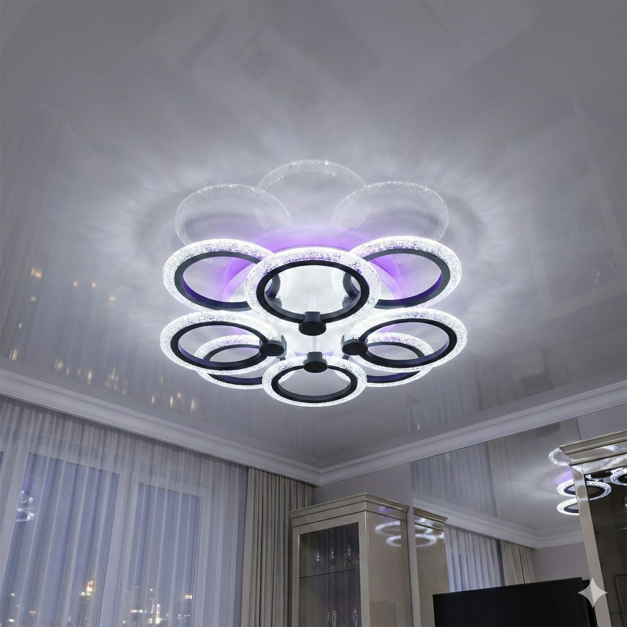 Лед люстра кольца фактурный акрил Diasha 140W до 20 м² цвет Черный D8748-600+400BK