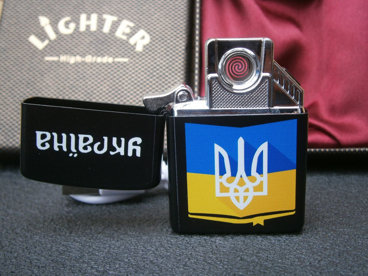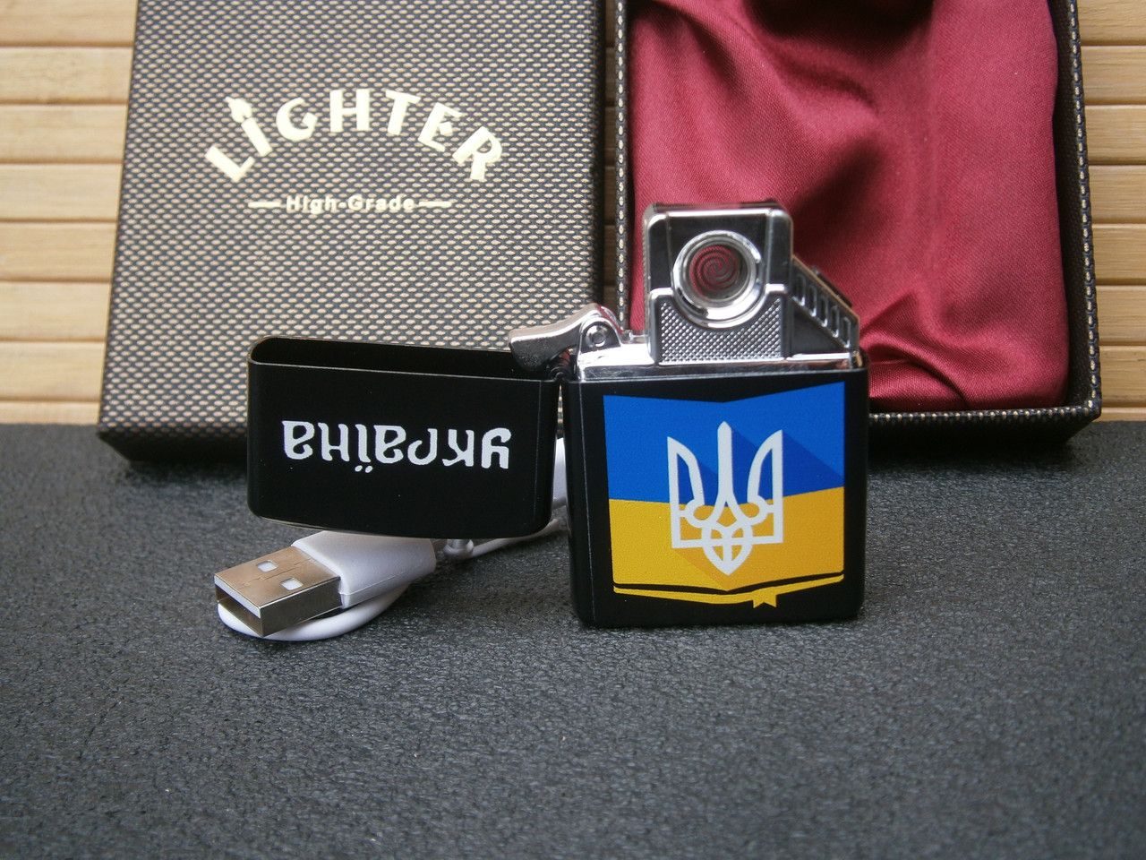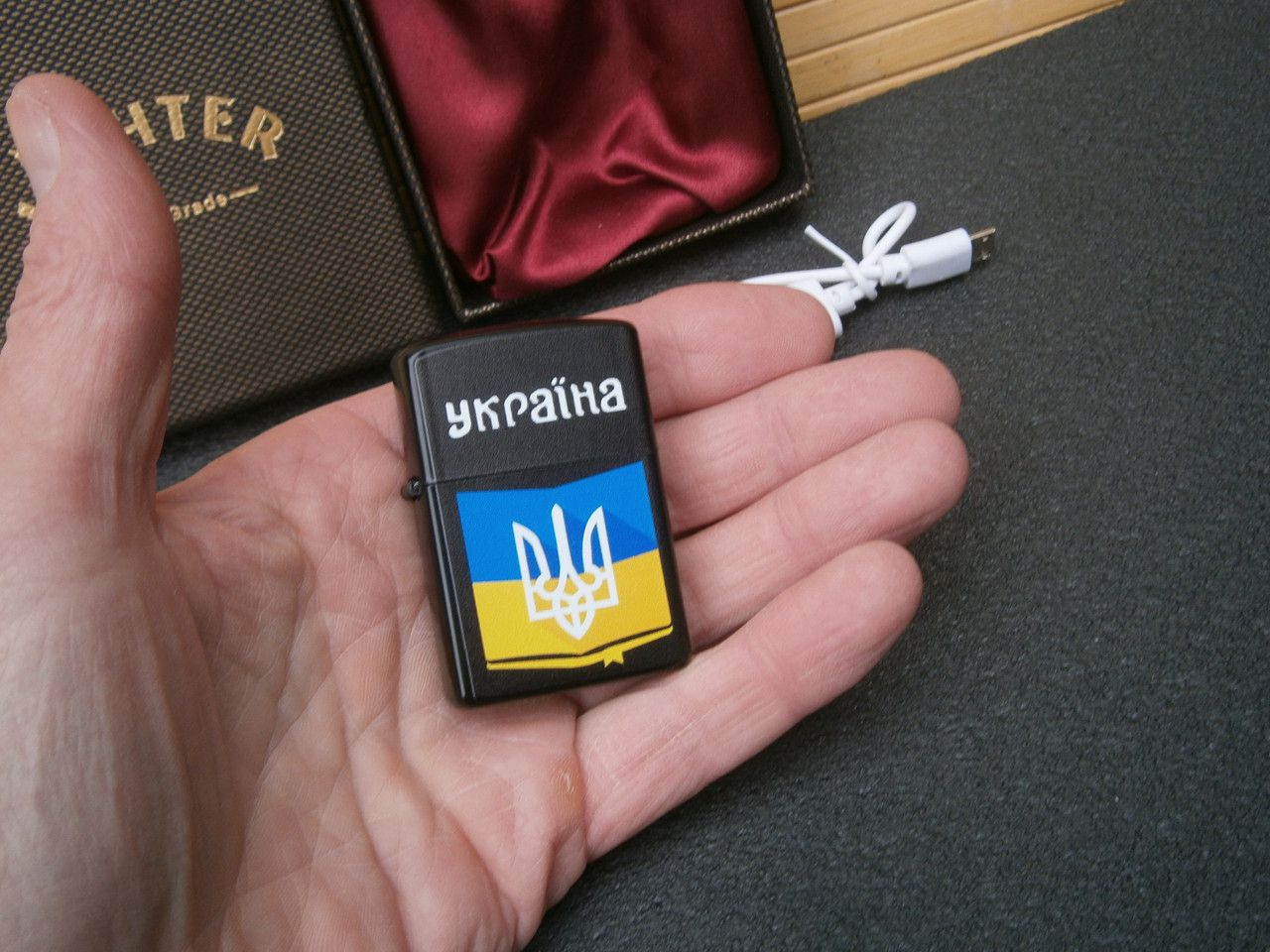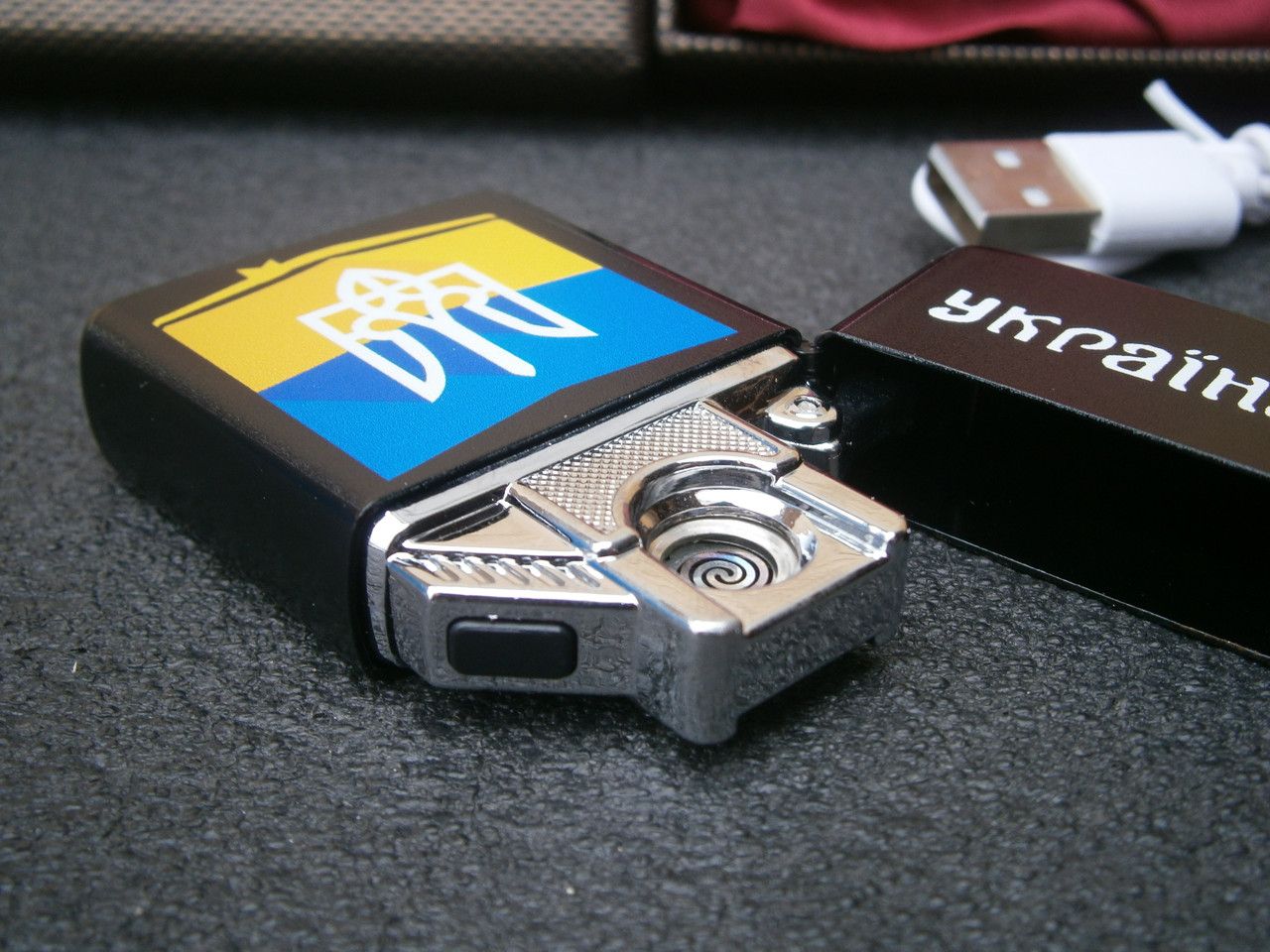 Электронная USB зажигалка Флаг Украины в подарочной коробке