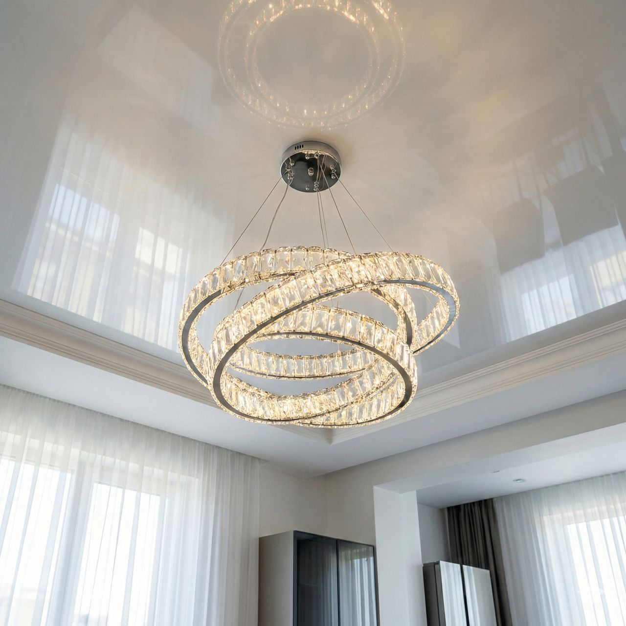 Потолочная люстра с кольцами Diasha 58W до 12 м² цвет Хром 2538NEW HR dimmer
