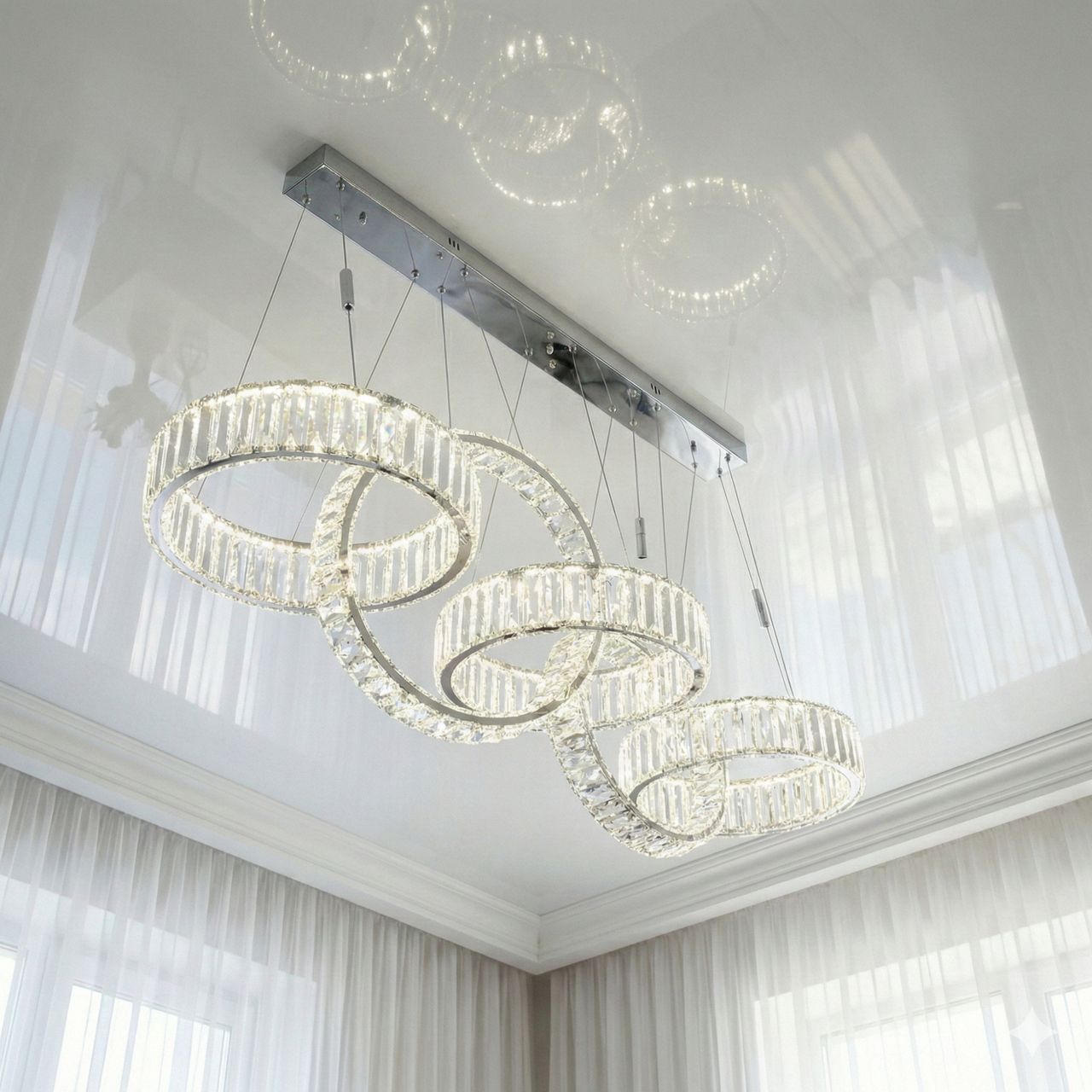 Люстра вытянутая с кольцами Led Diasha 195W до 30 м² цвет Хром 523/400x5CH