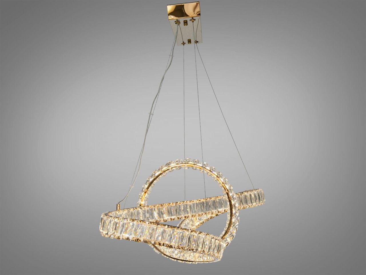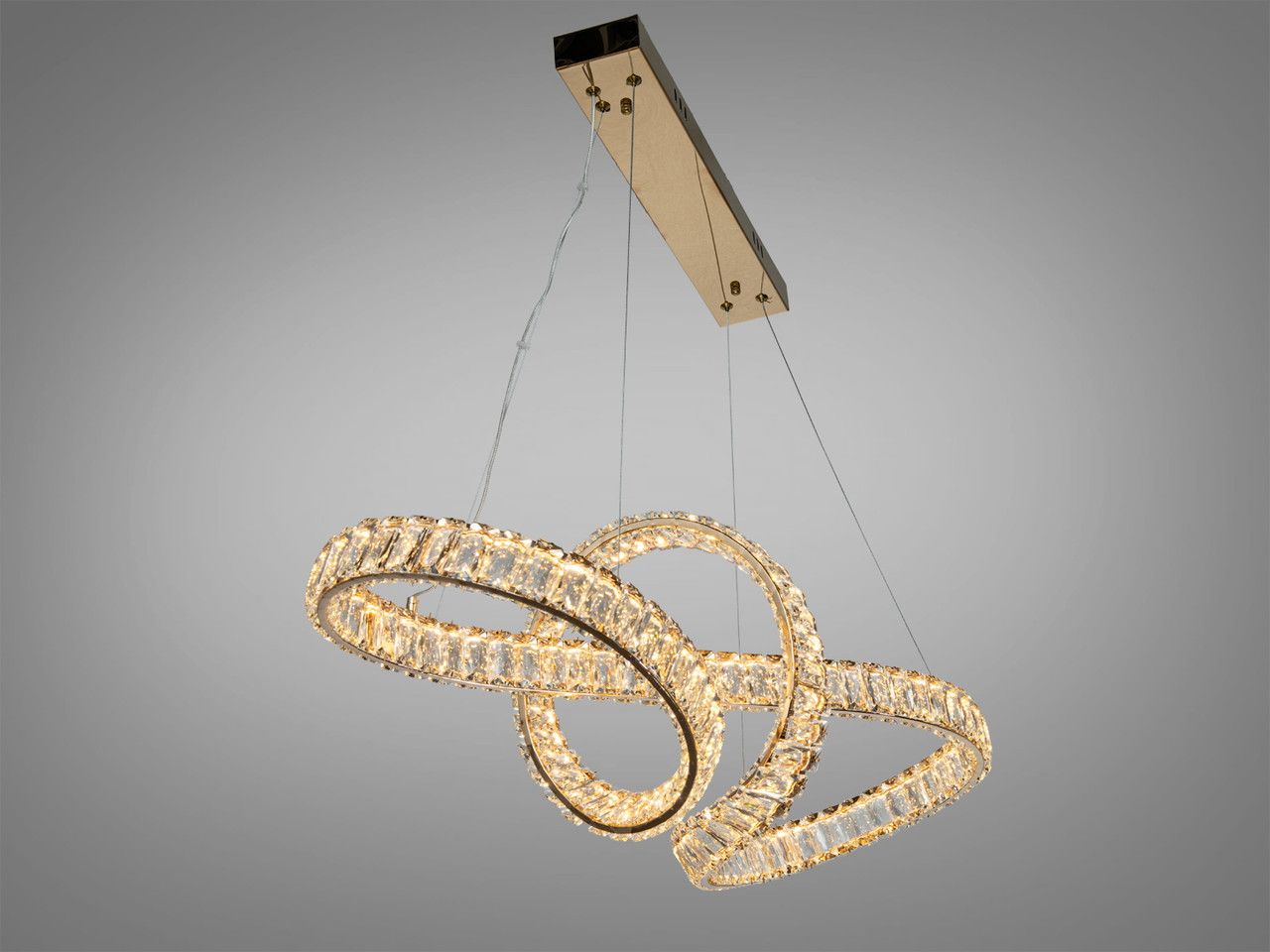 Светодиодный подвес в зал хрусталь Diasha 70W до 16 м² цвет Золотистый 7897/500+400+300S-Gold