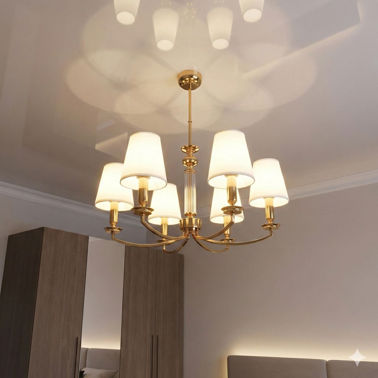 Люстра с абажуром в гостиную Diasha цоколь E14 ламп 6 шт цвет Золотистый 1017/6G