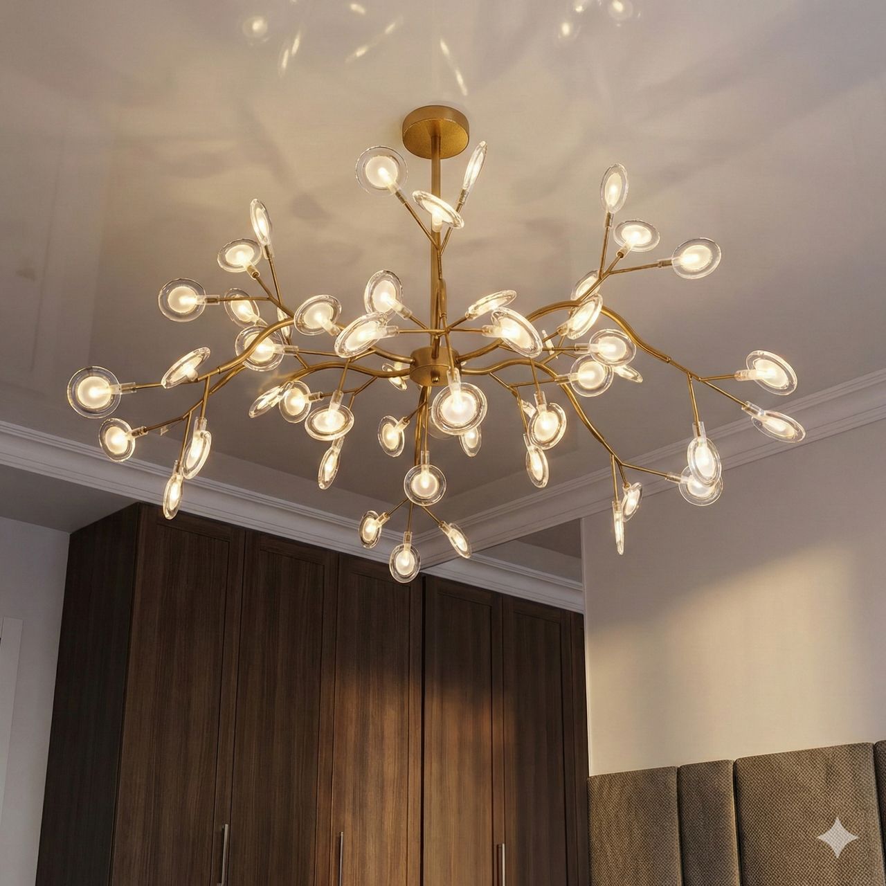 Люстра в гостиную мелкие плафоны Diasha цоколь G4 ламп 54 шт цвет Золотистый 886-54C GD