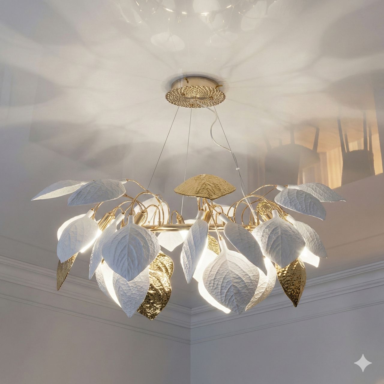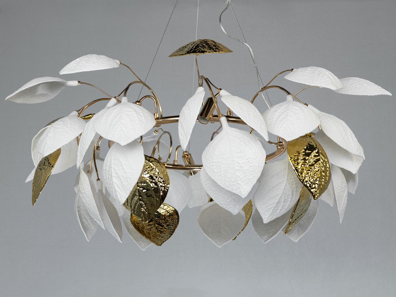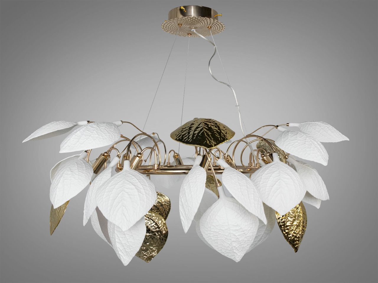 Люстра в зал с листочками Diasha цоколь E14 ламп 8 шт цвет Золото 7238-8PR GD