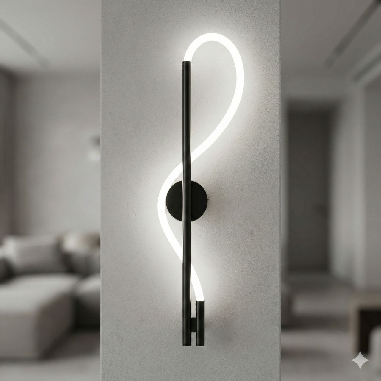 Бра Лед в гостиную 14W дизайнерское, Темный хром (85 см)Современное художественное решение для акцентного освещения гостиных, спален и кабинетов площадью до 10 м². Благодаря внушительной высоте 85 см и уникальной волнообразной форме, это бра выполняет роль не только источника мягкого света (770 Лм), но и самостоятельного арт-объекта в интерьере.Визуальный анализ и дизайнДизайн светильника построен на контрасте строгой вертикали и свободной плавной линии. Основой служит тонкий металлический стержень с премиальным гальваническим покрытием «темный хром», обладающим глубоким зеркальным блеском. Вдоль него изящно изгибается светящийся элемент — гибкая силиконовая трубка со встроенными светодиодами.Такая S-образная форма придает интерьеру динамику и легкость. Мягкий силиконовый диффузор обеспечивает идеально ровное свечение по всей длине без видимых точек, создавая комфортную световую среду. Цвет свечения — теплый белый (3200K), что идеально подходит для создания уютной, расслабляющей атмосферы в вечернее время.Лучшие сценарии использованияМасштабность модели (85 см в высоту) делает ее идеальной для:Для гостиной: В качестве парного декоративного освещения по бокам от телевизионной зоны или дивана.Для спальни: Стильная альтернатива классическим прикроватным лампам, не занимающая места на тумбочках.Для коридоров и холлов: Вертикальная форма визуально «поднимает» потолок и эффектно подсвечивает стены.Для современных офисов: Подчеркивает технологичность и прогрессивный стиль рабочего пространства.Почему эта модель решает ваши задачиХарактеристикаВаша проблема или сомнениеКак это работает на практикеТеплый свет 3200KХочется уютного света, который не режет глаза.Мягкий спектр идеален для отдыха и не утомляет зрение при длительном включении.Функция памяти: НЕТХочется, чтобы прибор работал просто и предсказуемо.Светильник не запоминает настройки яркости или состояния, работая в стандартном режиме при каждом включении.Поставляется в сбореНе хочется возиться со сложной сборкой и мелкими деталями.Бра полностью готово к монтажу. Вам нужно только закрепить планку на стене и подключить питание.Высота 85 смОбычные маленькие бра теряются на большой стене.Крупный размер превращает светильник в заметный элемент декора, заполняющий пространство.Технические характеристикиПараметрЗначениеТип светильникаНастенное LED бра (дизайнерское)Высота85 смШирина (вылет изгиба)30 смОтступ от стены8 смДиаметр основания12 смРабочее напряжение220 В (стандартная сеть)Общая мощность14 ВтСветовой поток770 ЛмПлощадь освещениядо 10 м²Температура света3200K (Теплый белый)Функция памятиОтсутствуетМатериал корпусаМеталл (Темный хром, гальваника)Материал плафонаСветотехнический силиконТип крепленияМонтажная планка (10 см)Вес1.4 кгГарантия12 месяцевСоветы по установкеПростое подключение: Светильник не требует предварительной сборки. Установка производится на металлическую монтажную планку (10 см), которая надежно удерживает конструкцию. Основание диаметром 12 см позволяет скрыть место вывода кабеля даже при наличии небольших огрехов в отделке.Универсальность: Бра можно монтировать как строго вертикально, так и под небольшим наклоном, создавая на стене уникальные световые композиции из нескольких приборов.Часто задаваемые вопросыВопрос: Можно ли замен