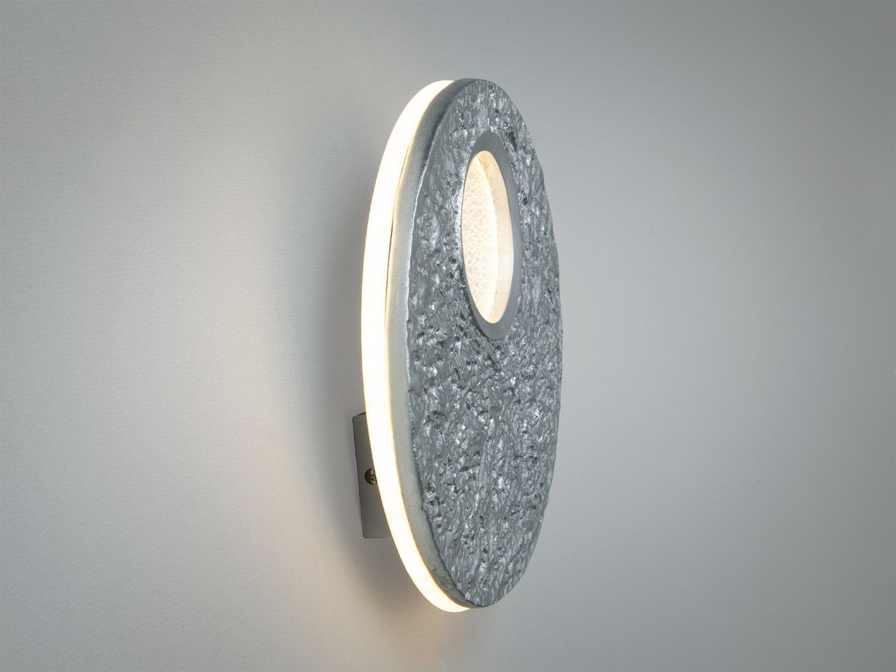 Светильник на стену LED 15W "Серебряная Луна", Интерьерный (27х27 см)Изысканное световое решение для гостиничных номеров, лобби и современных жилых интерьеров площадью до 10 м². Благодаря уникальной рельефной фактуре под природный камень и ультратонкому профилю (всего 5 см), это бра создает премиальную атмосферу, не загромождая пространство.Визуальный анализ и дизайнДизайн светильника вдохновлен строгостью и эстетикой природных минералов. Плафон выполнен в форме круга из фактурного гипса. Поверхность имеет сложный «лунный» рельеф с серебристым покрытием, которое придает изделию холодный благородный блеск. Такое исполнение идеально подходит для интерьеров в стиле хай-тек, минимализм, лофт или скандинавский шик.Светильник оснащен комбинированной системой освещения: мягкая контурная подсветка (эффект Eclipse) создает световой ореол на стене, а центральный декоративный элемент с хрустальной фактурой стекла обеспечивает дополнительный визуальный акцент. Холодное серебро корпуса в сочетании с игрой теней на рельефе превращает прибор в эффектный арт-объект.Лучшие сценарии использованияКомпактность и декоративность делают модель приоритетным выбором для коммерческих и жилых зон:Для гостиниц и отелей: Идеально подходит для прикроватной зоны в номерах (заменяет настольные лампы) или для подсветки длинных коридоров. Тонкий корпус исключает случайные повреждения при перемещении гостей.Для спальни: Мягкое контурное свечение в теплом режиме создает идеальные условия для отдыха перед сном.Для лестниц и входных зон: Обеспечивает безопасное освещение, сохраняя при этом каждый сантиметр свободного пространства.Почему эта модель решает ваши задачиХарактеристикаВаша проблема или сомнениеКак это работает на практике3 режима светаНужно разное освещение для чтения и отдыха.Вы меняете температуру (3200K / 4100K / 6500K) быстрым переключением обычного настенного выключателя.Вылет всего 5 смСветильник может мешать проходу в узком коридоре.Ультратонкий корпус практически сливается со стеной, что делает его безопасным и эргономичным.Функция памяти: НЕТХочется легкой смены атмосферы без сбоев.Светильник не запоминает последний режим, что позволяет циклично переключать оттенки при каждом включении.Поставляется в сбореСложный монтаж в условиях ремонта.Бра полностью готово к установке. Вам нужно только зафиксировать планку и подключить питание.Технические характеристикиПараметрЗначениеТип светильникаНастенное LED бра (интерьерное)Высота / Ширина27 х 27 смОтступ от стены5 смРабочее напряжение220 В (стандартная сеть)Общая мощность15 ВтСветовой поток825 ЛмПлощадь освещениядо 10 м²Температура света3200K (теплая), 4100K (нейтральная), 6500K (холодная)Память режимаОтсутствует (цикличное переключение)Материал каркасаМеталл / Гипс (фактурный)Тип покрытияКраска (Серебро)Тип крепленияМонтажная планка (13 см)Вес0.92 кгГарантия12 месяцевСоветы по установкеПростое подключение: Светильник не требует предварительной сборки. Установка производится на металлическую монтажную планку (13 см), которая надежно фиксирует круглый прибор к стене. Основание (14х6 см) полностью скрывает место вывода кабеля.Универсальность: Благодаря малому весу (менее 1 кг), бра можно монтировать на гипсокартонные перегородки, деревянные панели или декоративные стеновые плиты в отелях.Часто за