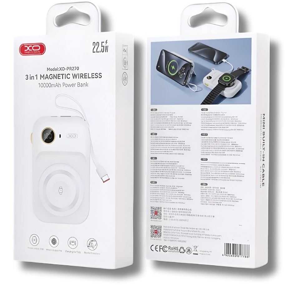 Повербанк XO PR270 22.5W+20W+3-in-1 15W with TYPE-C with Stand 10000mAh White
