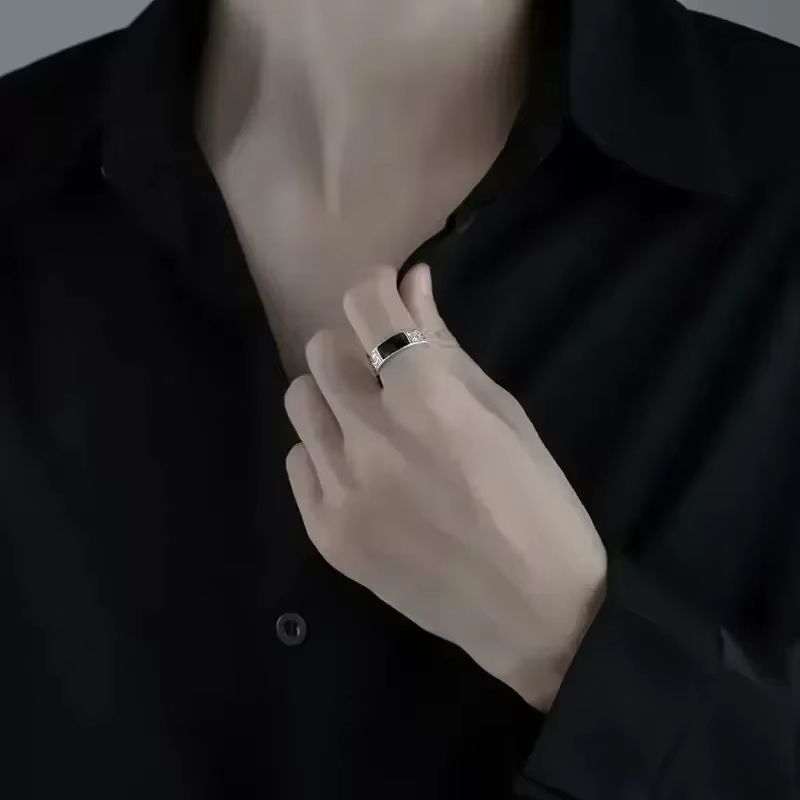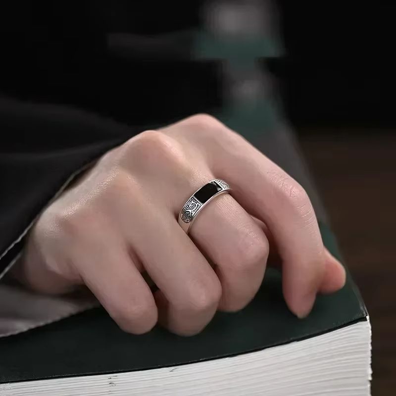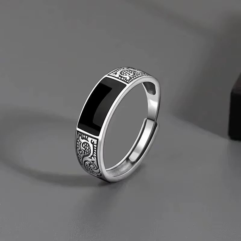 Кольцо с титановой сталью с узором дракона черным камнем перстень дракон
