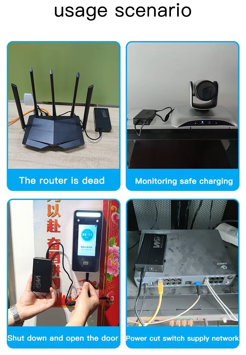 - Мини UPS обеспечивает бесперебойное питание 12 V устройств при отключении электроэнергии, что особенно важно для маршрутизаторов, модемов, камер наблюдения, ONU/ONT и прочего оборудования. Он автоматически переключается на питание от аккумулятора без задержек, сохраняя работу сети и подключения.