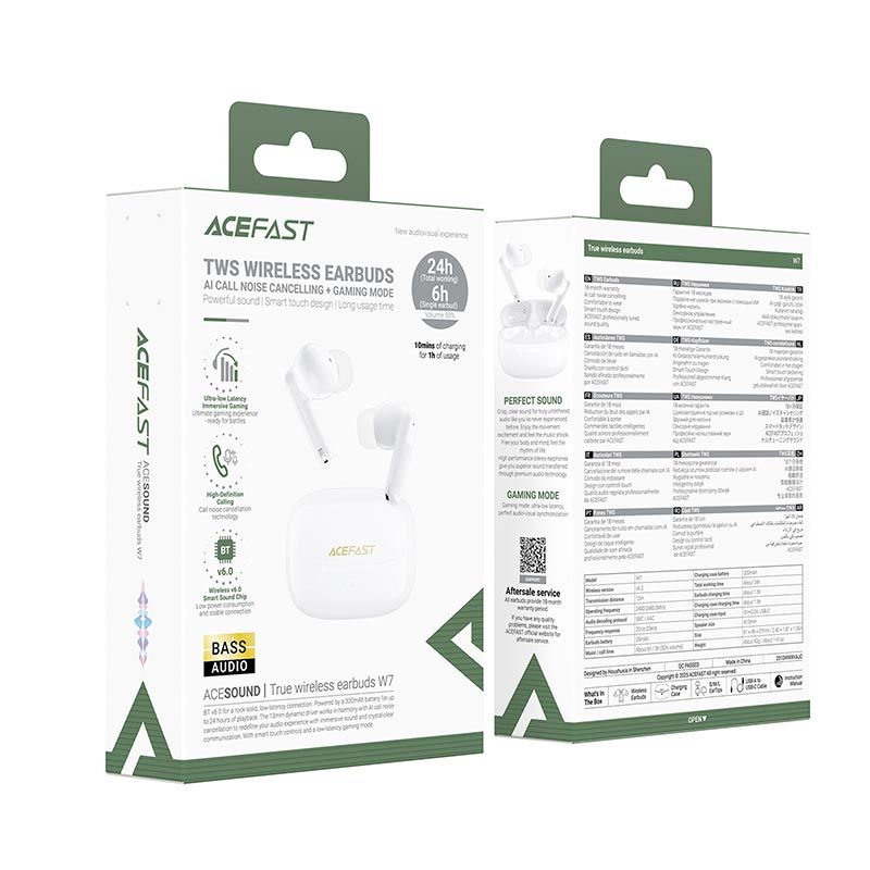 Наушники ACEFAST true wireless earbuds W7 IPX4 |BT6.0, 6/24h, 35/320mAh| white