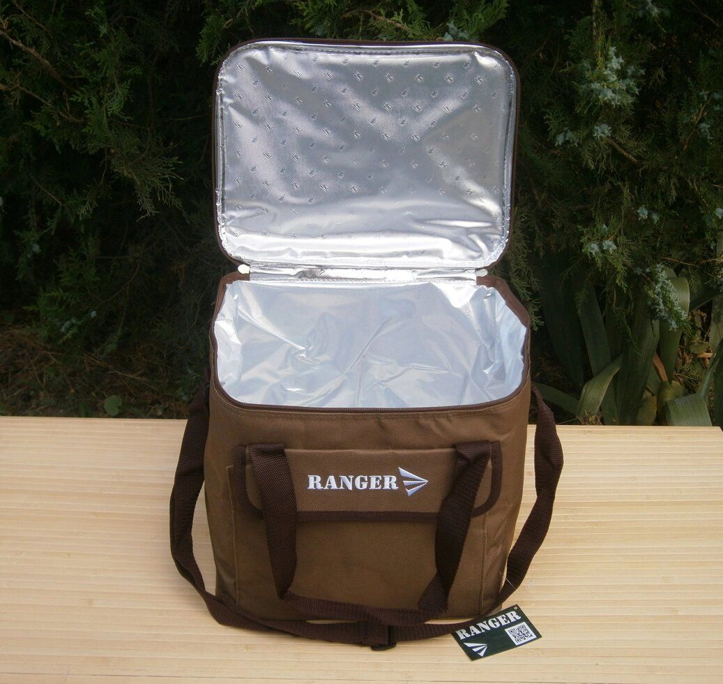 Удобные ремни для переноски через плечо с регулятором длины и дополнительно предусмотрены ручки по бокам, которые соединяются в одну и можно удобно носить в руках. Наружная часть сшита из прочного нейлона, в передней части предусмотрен карман для мелких вещей. Имеет внешне привлекательный вид, благодаря правильно подобранному цвету. Термосумка Ranger объемом 15 литров, очень вместительна и компактна. Основное предназначение хранения продуктов и напитков горячими и холодными. Обеспечивает очень хорошую термоизоляцию за счет изотермического наполнителя. Отлично держит форму. Чтобы температура внутри термосумки была идеальной, используйте дополнительно аккумуляторы холода, а термосумка позаботится, чтобы она оставалась такой длительный период времени.