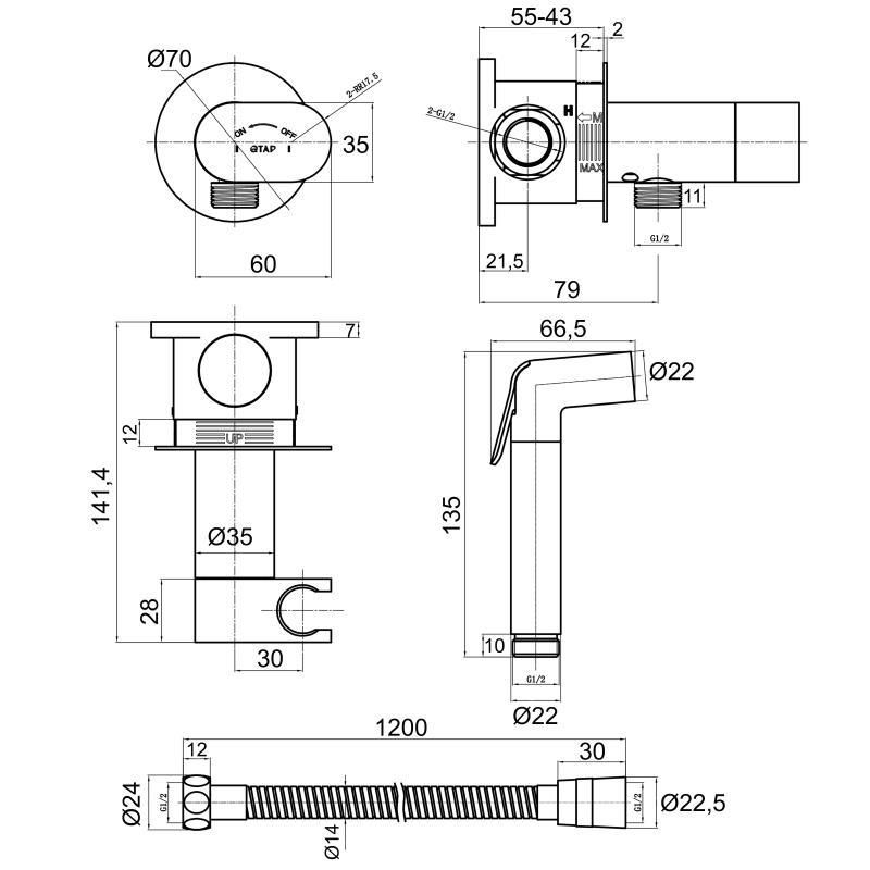 Набор для гигиенического душа Qtap Inspai-Varius округлый прогрессивный картридж QTINSVARCRMV00440601 Chrome