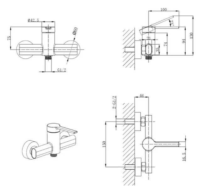 Настенный однорычажный смеситель для гигиенического душа МИХ Lord 024 – это современное решение для санузла, сочетающее функциональность и стильный дизайн. Модель представлена в двух основных вариантах покрытия: классический хром