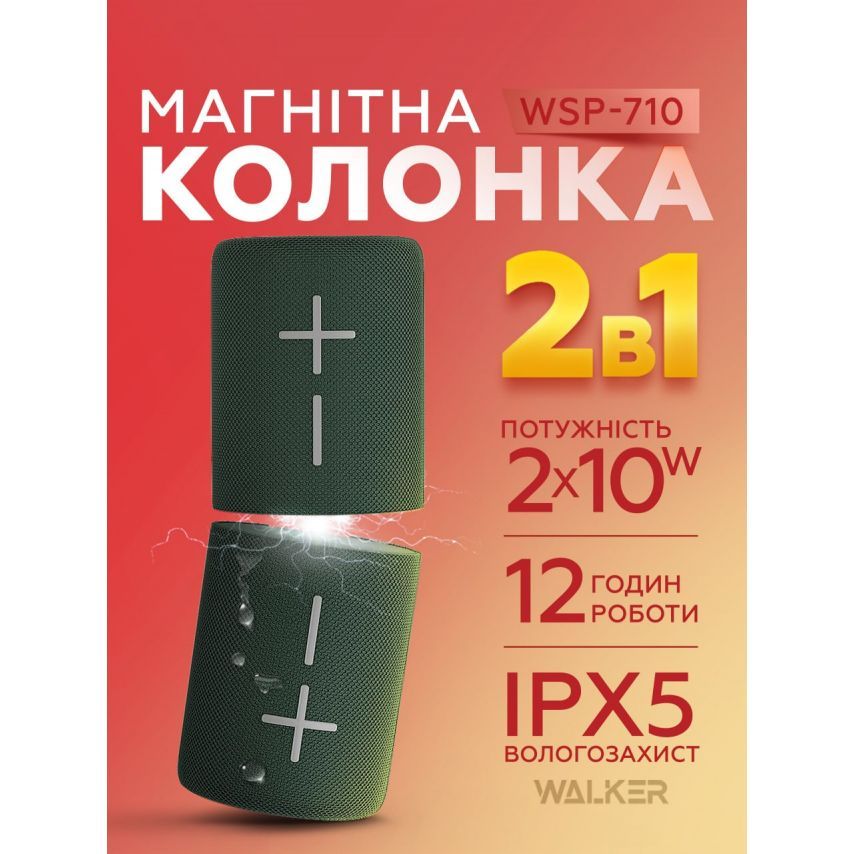 Портативна колонка 2в1 WALKER WSP-710 green