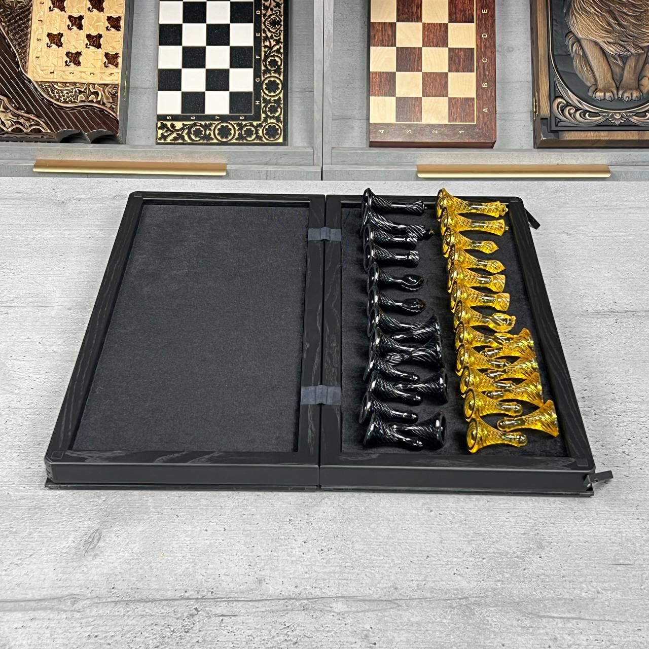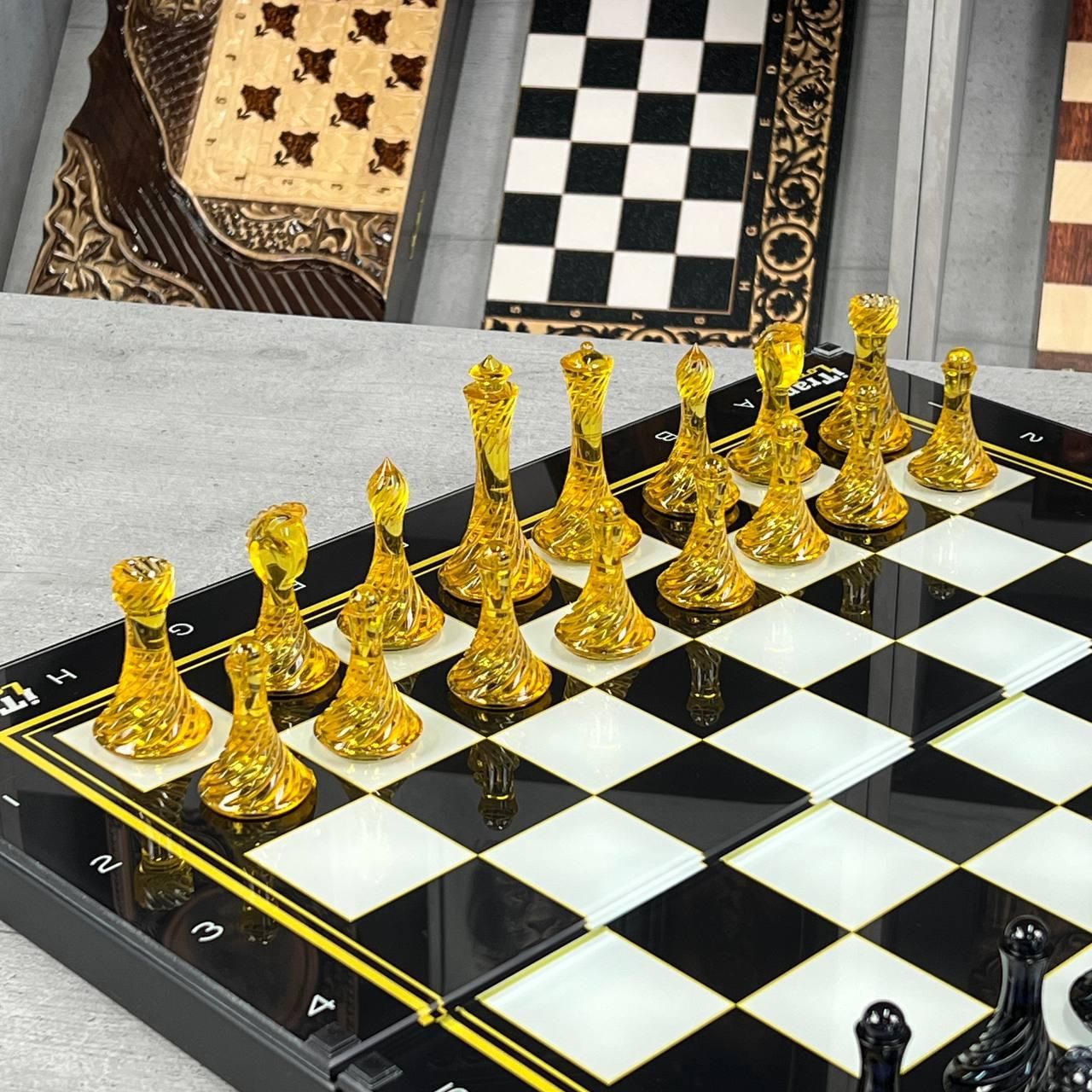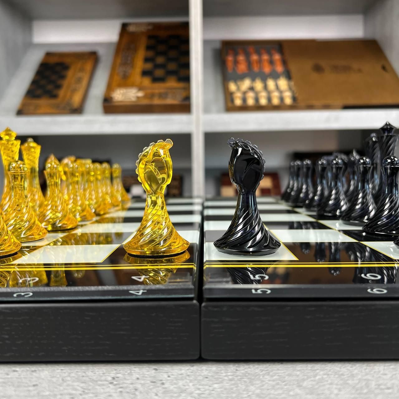 Эксклюзивные стеклянные шахматы Автомобильная тематика: Премиум подарок для шефа Ищете солидный подарок для человека, увлекающегося автомобилями и ценящего интеллектуальные игры? Эти персонализированные шахматы серии "Фото-шахматы Стандард" – идеальный выбор для руководителя, бизнес-партнера или настоящего автолюбителя. Мы объединили современный дизайн, закаленное стекло и возможность нанесения любого логотипа или изображения под игровое поле. Почему эти шахматы станут особым подарком: Авторский дизайн: Игровое поле изготовлено из сверхпрочного закаленного стекла (6 мм) с УФ-печатью вашего любимого авто или логотипа бренда. Глянцевая поверхность смотрится дорого и современно. Премиальные материалы: Рама (борт) выполнена из массива ясеня, выкрашенного в глубокий черный цвет. Надежная фурнитура – эксклюзивные задвижки собственной разработки. Уникальные фигуры: 32 фигуры изготовлены вручную из ювелирной эпоксидной смолы. Вы можете выбрать цвет тонировки. Каждая фигура имеет металлический утяжелитель в основе, что придает им приятный вес и устойчивость. Продуманность до мелочей: Внутренняя часть доски выстлана мягким черным бархатом с отдельными ячейками для хранения каждой фигуры. На основе доски предусмотрены антискользящие ножки (бампоны). Технические характеристики: Параметр Значение Размер (открытые) 50 х 50 х 3,5 см Размер (закрытые) 50 х 25 х 7 см Размер ячейки 5 см Материал поля Закаленное стекло 6 мм Материал корпуса Натуральное дерево (Ясень) Высота короля / пешка 6,5 см 8 кг Персонализация: Мы можем адаптировать дизайн под любую марку авто или добавить приветствие. Если у вас остались вопросы относительно товара, наличия, персонализации или оформления заказа, свяжитесь с нами. Телефон для заказа и консультации: Менеджеры связи и помогут выбрать нарды или шахматы для подарка или личного пользования. Адрес производства и магазина GrossMeister: Украина Львовская область г. Стрый ул. Заньковецкой, дом. 2 2-й этаж Мы осуществляем доставку нард и шахмат по всей Украине и за границу. Возможно изготовление настольных игр под заказ с индивидуальным дизайном.