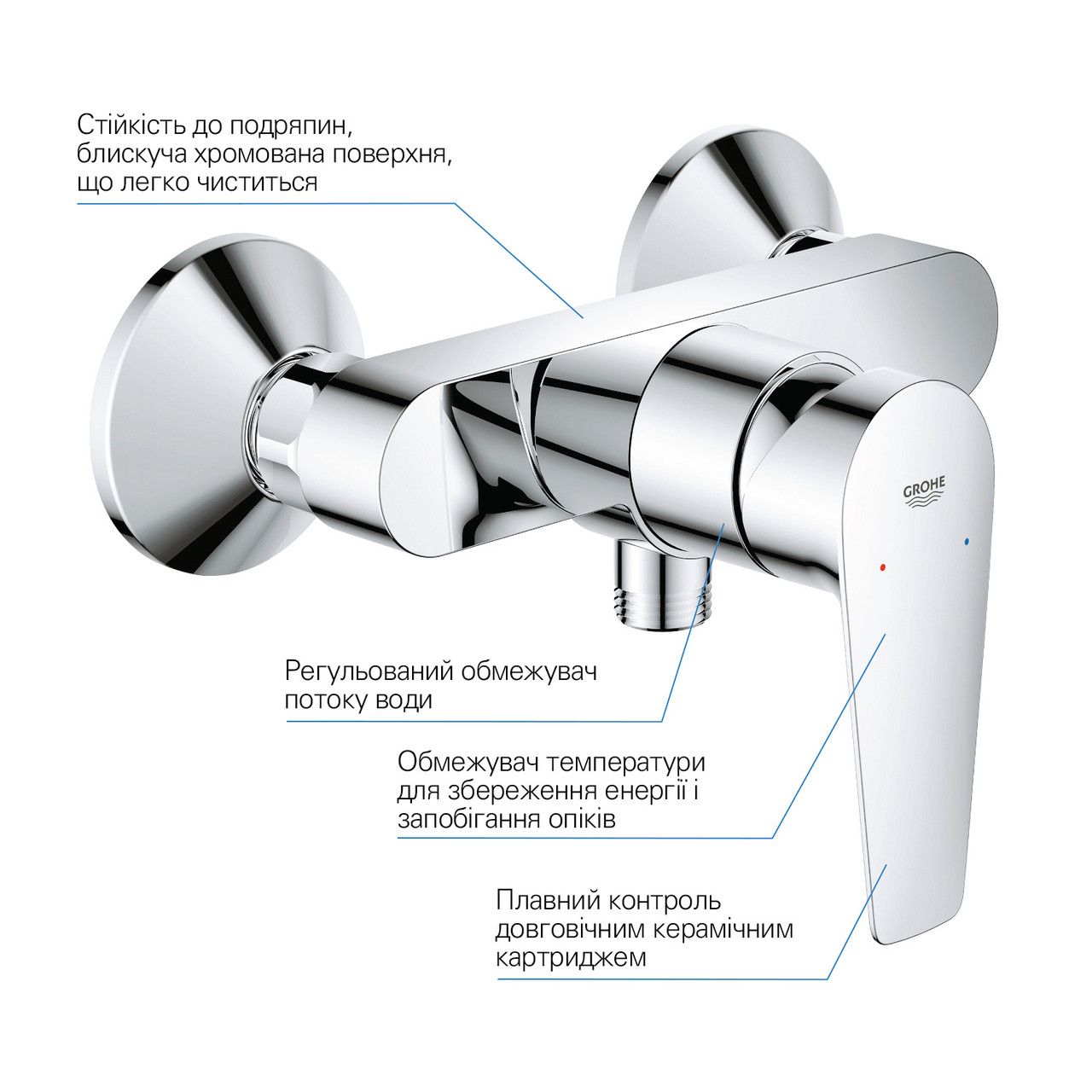Додаткові характеристикиРегулювання витрати води. Відведення для душу знизу 1/2". Зі вбудованим зворотним клапаном.