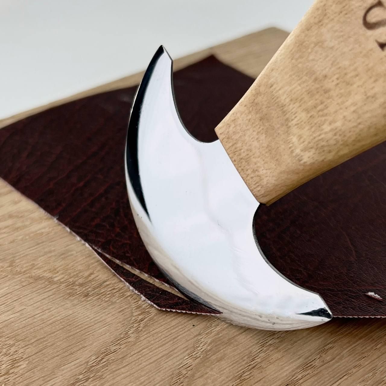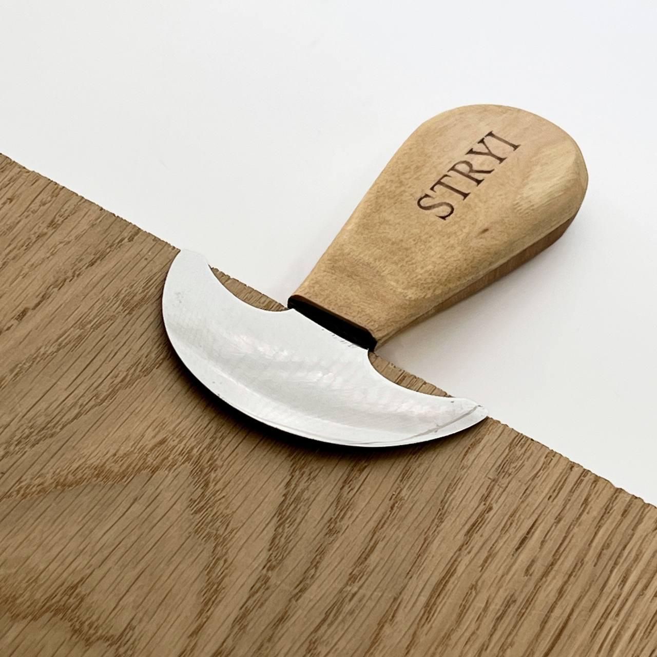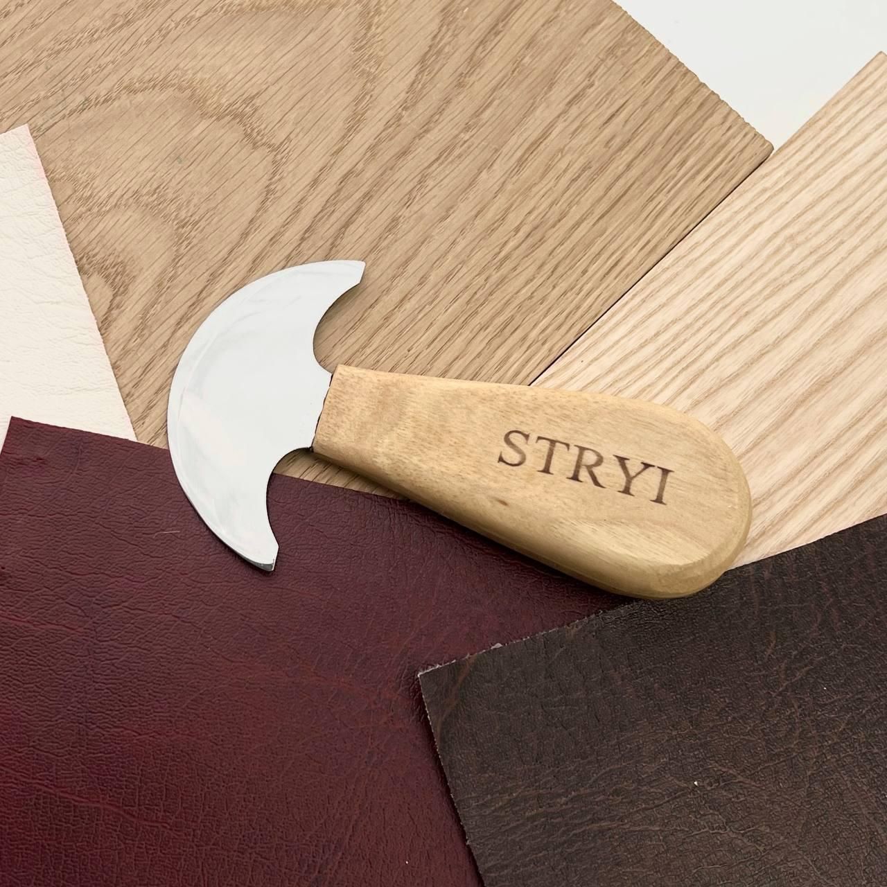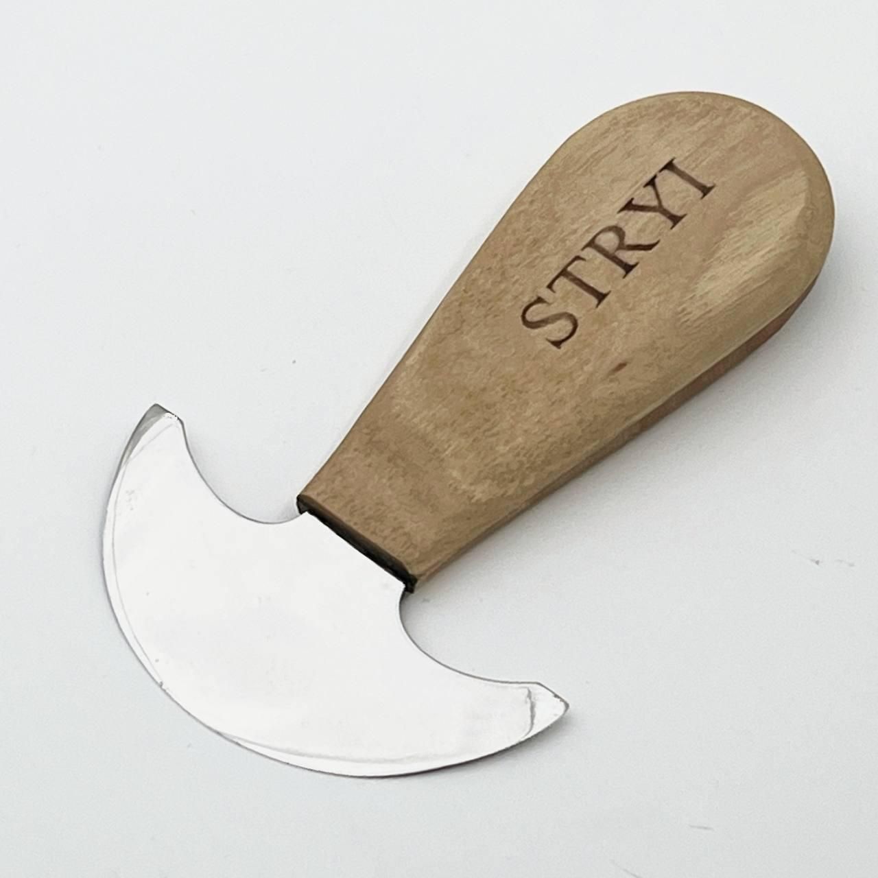 Круглый нож премиум-класса для обработки кожи STRYI Profi Этот исключительный нож для кожи предназначен для безопасного и эффективного использования в различных видах кожгалантереи. Особенности и преимущества Улучшенная обработка краев: во время нагрева нож помогает укрепить и создать полированный, чистый край на кожаных изделиях. Закругленный профиль лезвия: Слегка закругленный профиль лезвия обеспечивает плавные наклонные разрезы, облегчая работу с кожей. Эргономичный дизайн рукоятки: Угол наклона рукоятки специально разработан для того, чтобы нож можно было опускать вниз и выполнять разрезы без сопротивления, что особенно удобно при работе с тонкими кожами, склонными к растяжению. Продуманная конструкция этого ножа обеспечивает точность и простоту использования, что делает его незаменимым инструментом для кожевников, стремящихся к высококачественным результатам. Технические характеристики: Ширина лезвия – 85 мм; Общая длина – 135 мм; Марка металла – сталь У8 (60-62 HRC); Толщина металла – 1,5 мм Покрытие – льняное масло; Материал рукояти – орех. Этот нож был разработан по специальному заказу опытных мастеров по коже. Гарантийное обслуживание – весь период эксплуатации инструмента (минимальный период эксплуатации 20 лет) Контроль каждого процесса производства STRYI, а особенно правильная термообработка обеспечивает длительный срок службы инструмента без частой дополнительной перезаточки в процессе работы. Также обращаем Ваше внимание, что STRYI единственный производитель, который предоставляет услугу бесплатного обслуживания инструмента на весь период его эксплуатации (реставрация инструмента, повторная заточка или перетачивание инструмента). и другие сложные изделия из кожи. Совершив покупку у нас, Вы получаете: Перед отправкой инструмент проверяется на заточку, закалку и жесткость металла, чтобы обеспечить длительное и комфортное использование инструмента STRYI Выбирая STRYI, Вы всегда можете рассчитывать на помощь и консультацию. Наши консультанты помогут Вам с выбором инструмента, а также всегда учтут Ваши пожелания и предложения! Смотрите другие виды ножей STRYI: Остались вопросы? Звоните нам. Наши менеджеры всегда на связи и готовы ответить на все ваши вопросы. Наши координаты: Адрес: Украина г. Стрый, ул. Заньковецкой, дом. 2, второй этаж