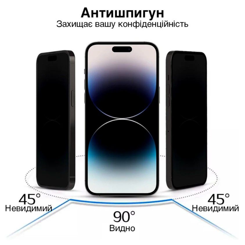 Модель относится к категории privacy-стекол (антишпион), что означает ограничение угла обзора экрана. При взгляде под углом изображение становится затемненным, поэтому окружающие люди не могут увидеть содержимое дисплея. Такая защита особенно полезна при использовании телефона в общественных местах — транспорте, кафе, офисах или учебных заведениях.