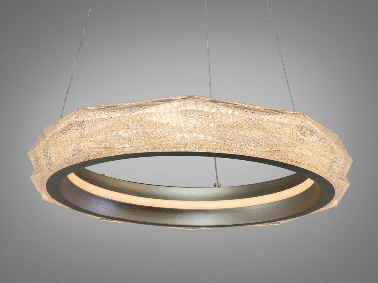 Подвесной светодиодный прибор в форме одиночного кольца с дистанционным управлением. Модель спроектирована для основного освещения коридоров, прихожих и небольших жилых зон. Конструкция сочетает металлический каркас и акриловый рассеиватель с кристаллической фактурой.