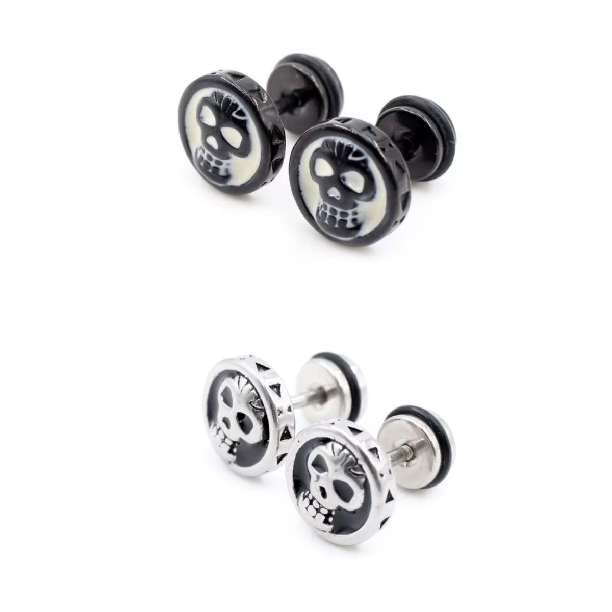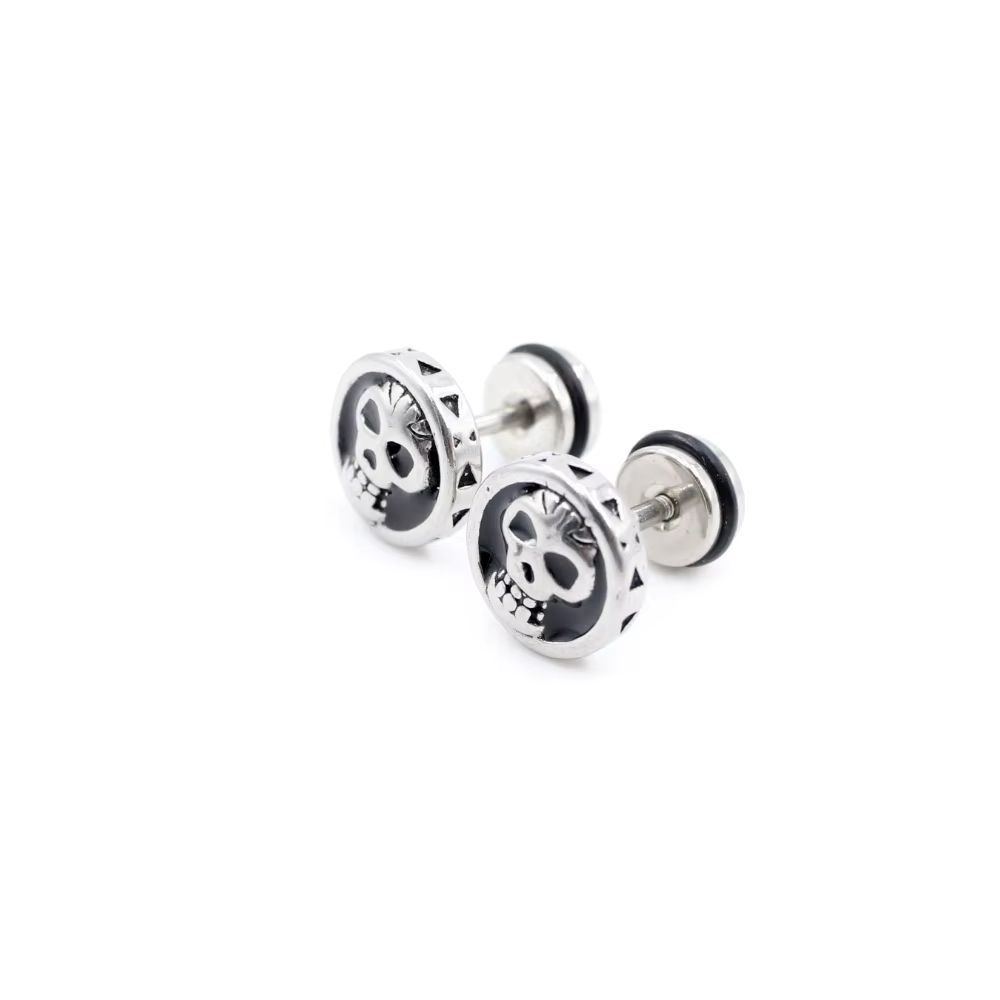 Серьги-гвоздики Череп с черепом из стали серьги-штанги круглые мужские 1шт