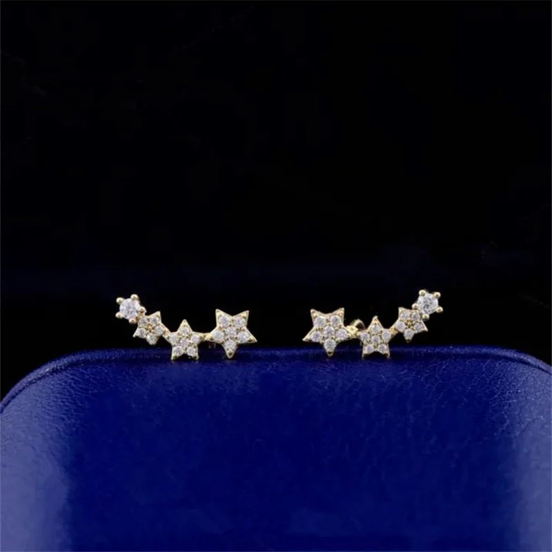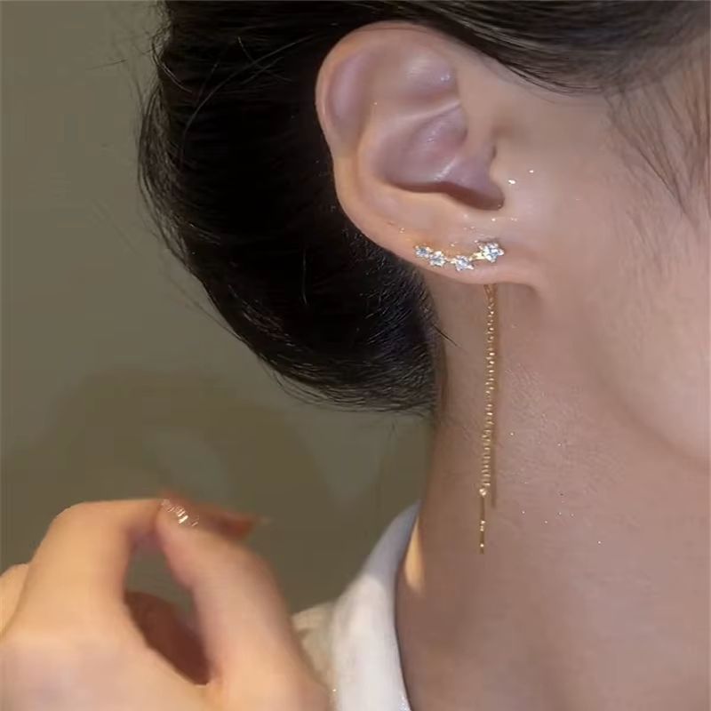 Серьги звездочки звезда длинные проволочные кисти нити цепочка протяжки с кристаллами камнями золотого цвета