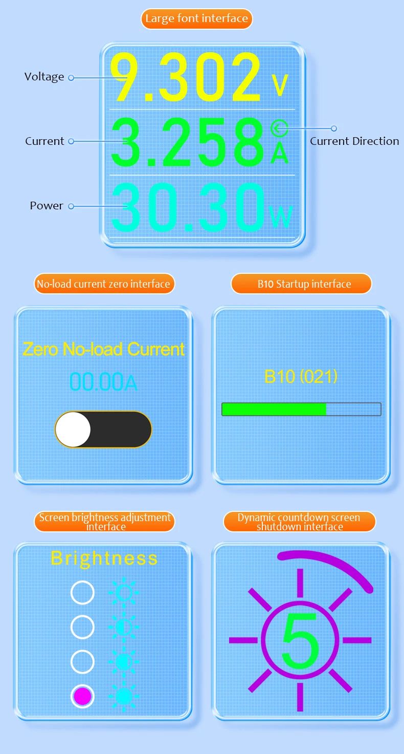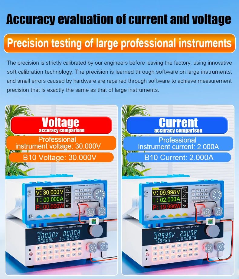 - Устройство оснащено профессиональной измерительной схемой и проходит заводскую калибровку, что обеспечивает точные показатели напряжения, тока и мощности.