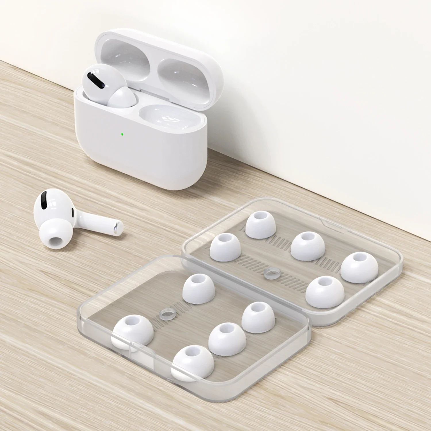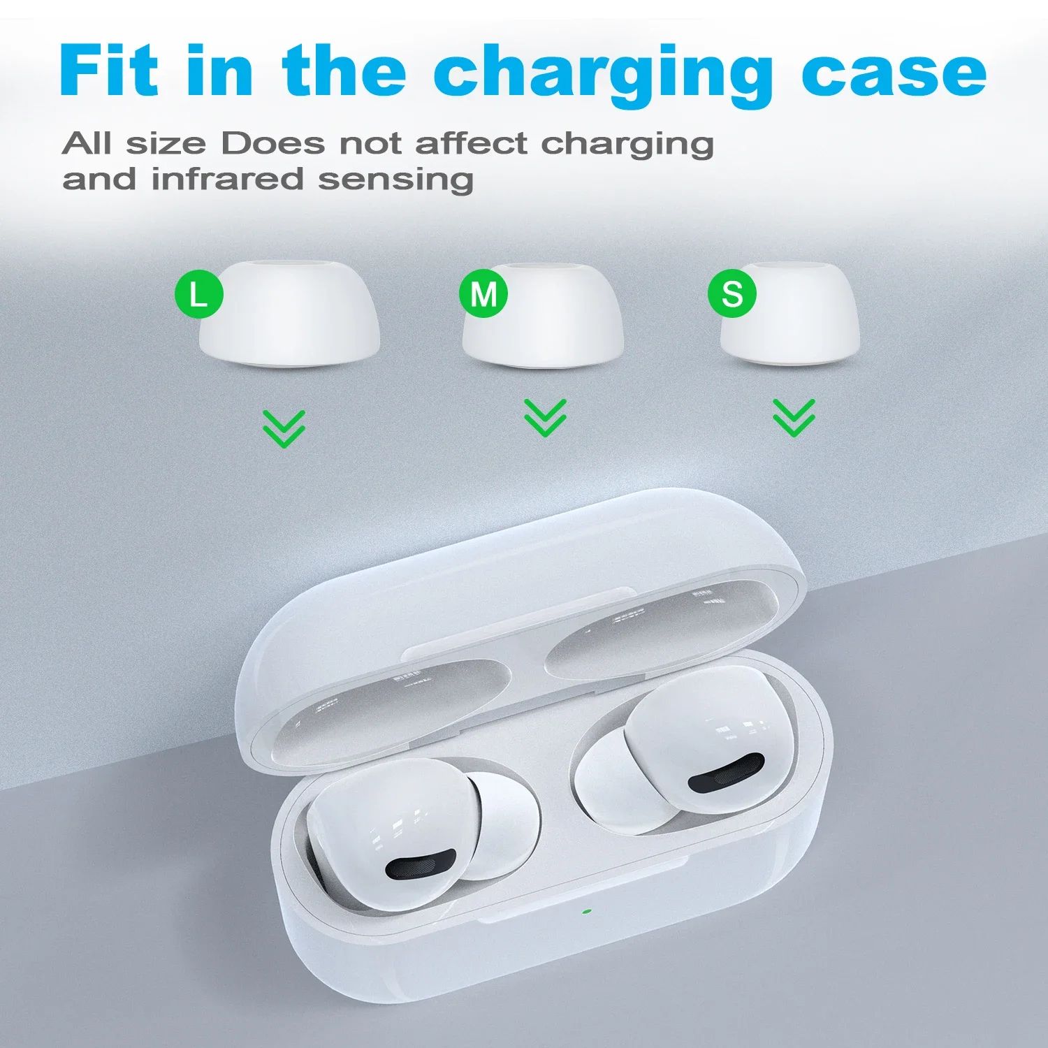 - Все размеры амбушюр полностью совместимы с оригинальным зарядным кейсом AirPods Pro — нет необходимости снимать их перед зарядкой.