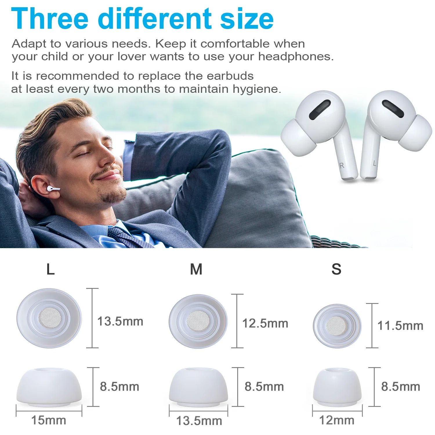 Амбушюры изготовлены из мягкого силикона с элементами, улучшающими герметичность и удобство ношения. Благодаря точной совместимости с оригинальной конструкцией AirPods Pro, насадки легко устанавливаются, надежно фиксируются и не выпадают при использовании. Подходят для ежедневного использования, спорта и длительного прослушивания.