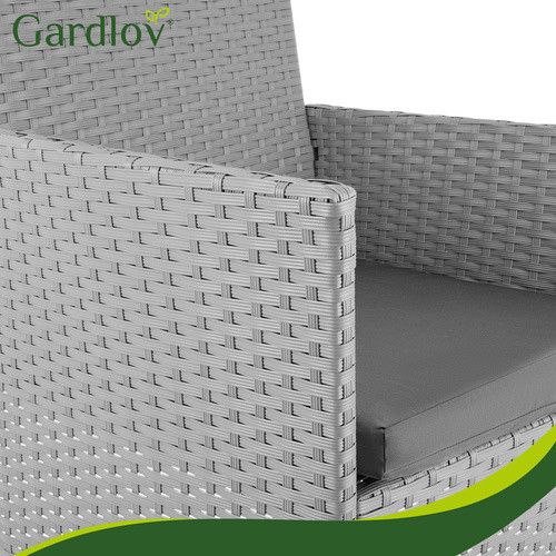 Садовая мебель из техноротанга серые Gardlov - набор: 2 кресла, диван, столик со стеклом и подушками