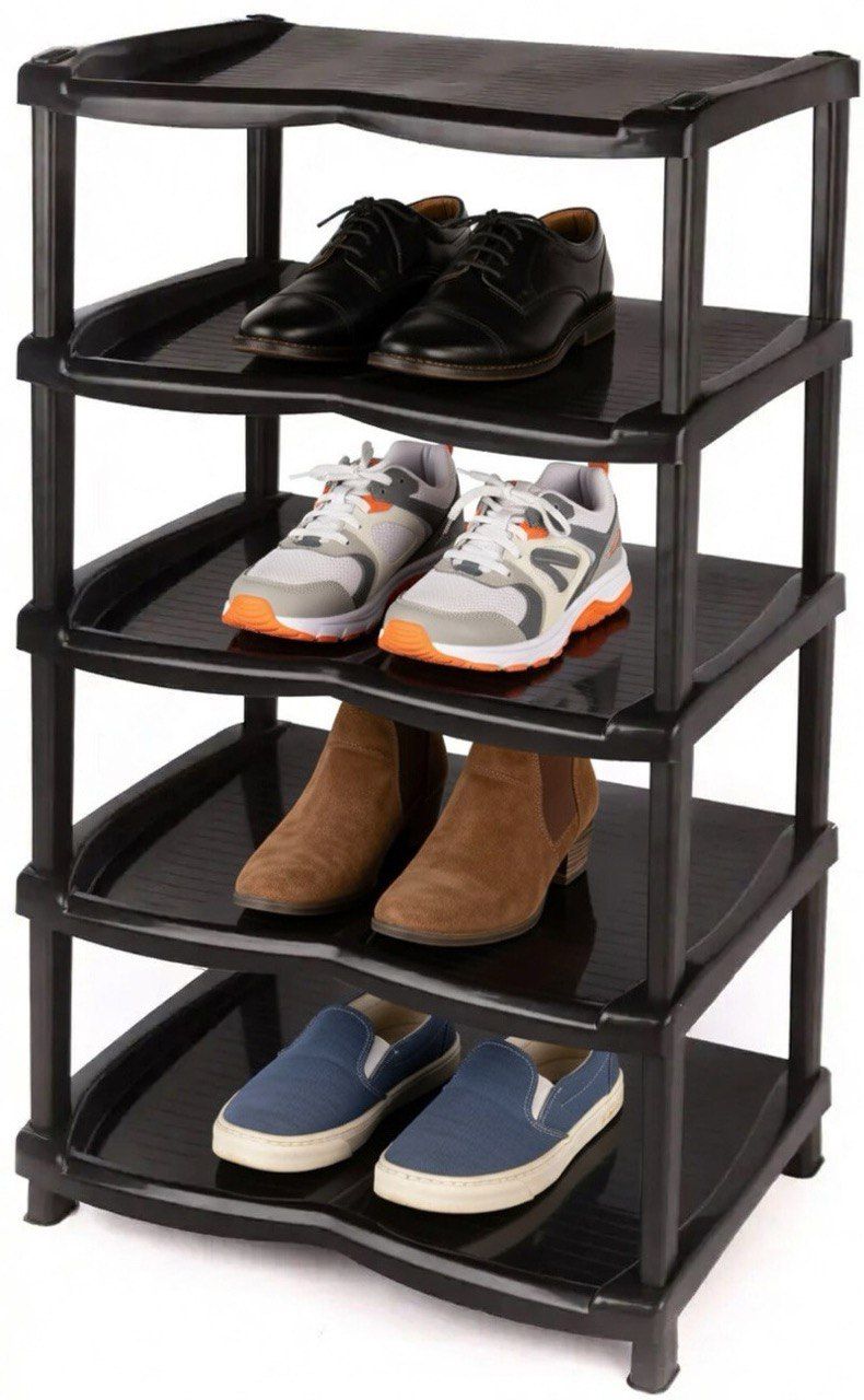 Компактная полка для обуви на 5 уровней – удобное решение для порядка в прихожей. Не занимает много места, но позволяет разместить достаточно пар обуви.