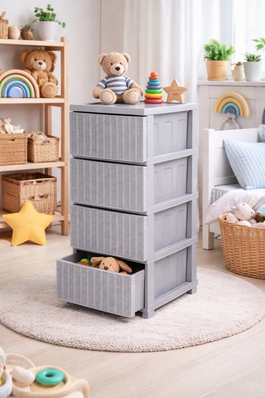 Комод ротанг на 4 ящика 35*45*86 см серый металлик
