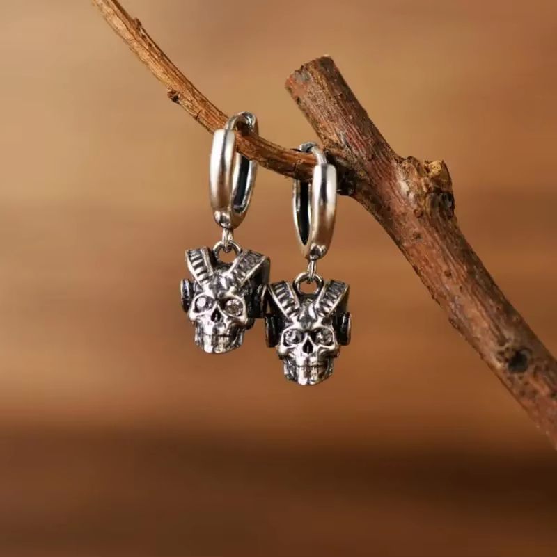 Серьги череп с черепом готические серьги-кольца круглые
