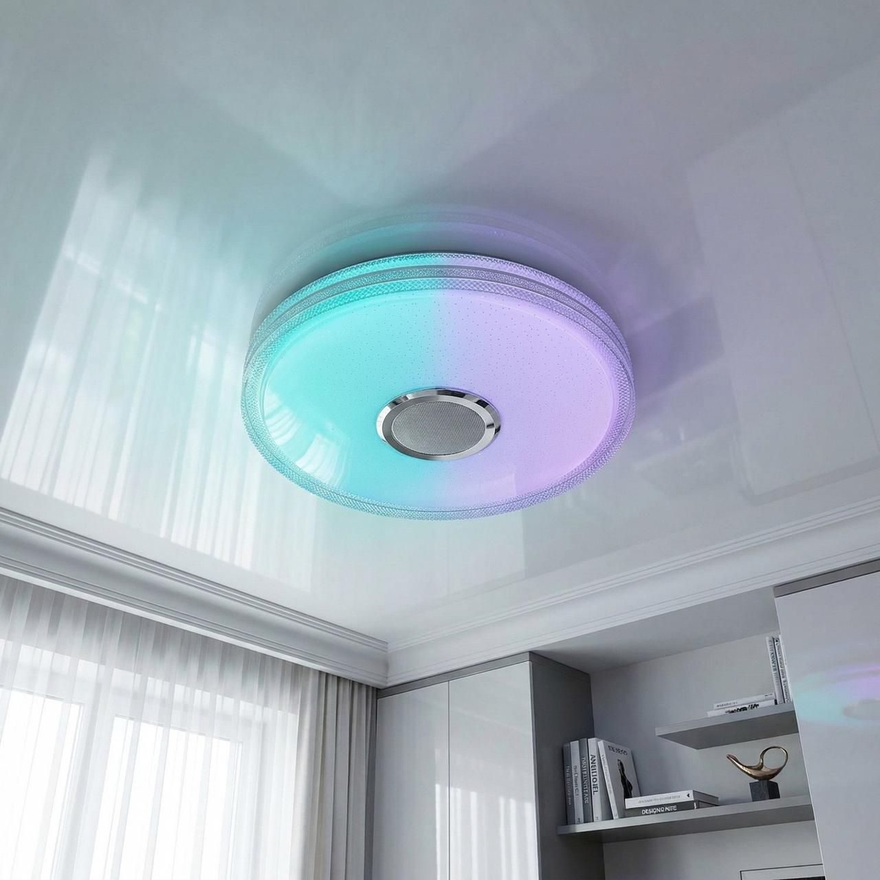 Мультимедійний освітлювальний прилад, що об'єднує функції джерела основного світла, декоративного підсвічування та акустичної системи. Модель підтримує інтеграцію в систему «розумного дому» через мобільний додаток TUYA Smart.