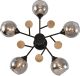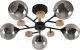 Модель оснащена пятью стеклянными плафонами темного цвета с зеркальным напылением. Такая поверхность создает особый визуальный эффект: в выключенном состоянии плафоны выглядят как стильные декоративные элементы с легким бликом, а во время работы свет мягко проходит через стекло, формируя уютную и атмосферную иллюминацию. Зеркальное покрытие придает глубине и современному шарму, делая люстру по-настоящему эффектной.