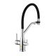 Модель оснащена гибким силиконовым изливом, который облегчает мытье посуды и использование мойки. Дополнительная функция подачи питьевой воды через отдельный рычаг делает смеситель особенно удобным и гигиеничным.