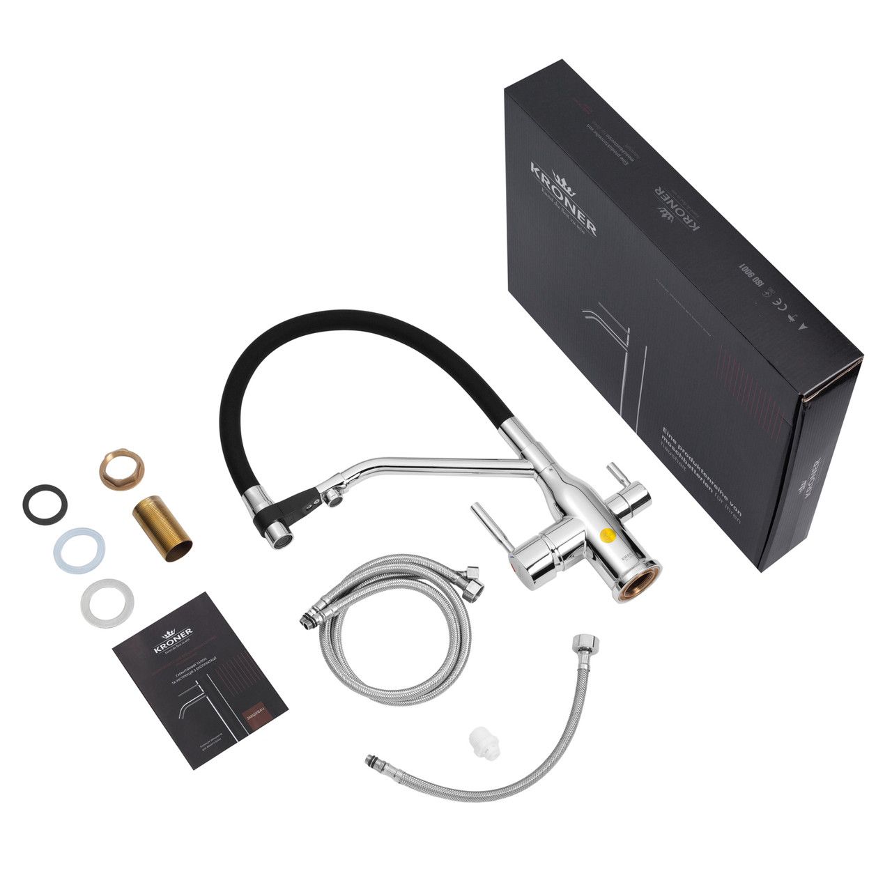 Смеситель Kroner KRP Kuche - C03816BLK (хром) - это удачное сочетание функциональности, комфорта и современного дизайна для вашей кухни.
