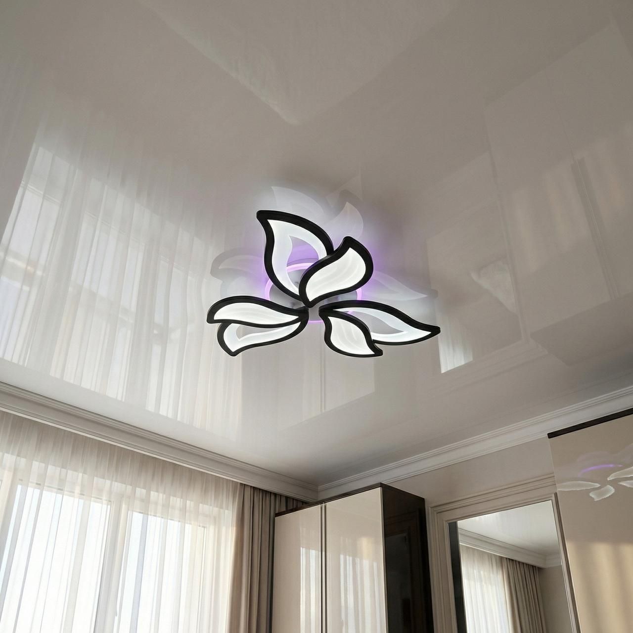 Спальня: Установка теплого спектра 3200K на минимальной яркости через пульт превращает люстру в мягкий источник света для релаксации.