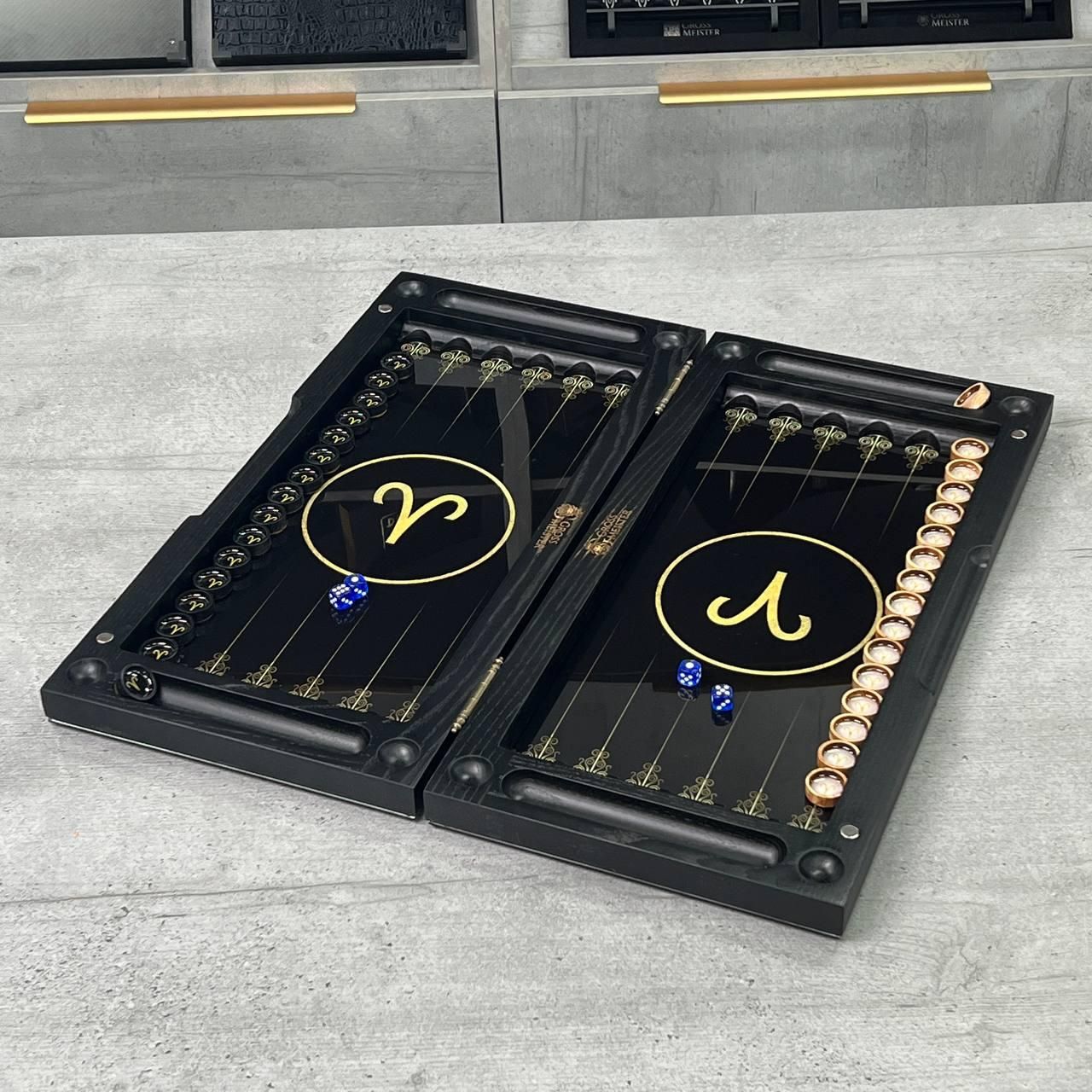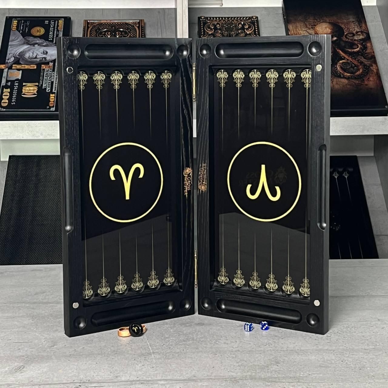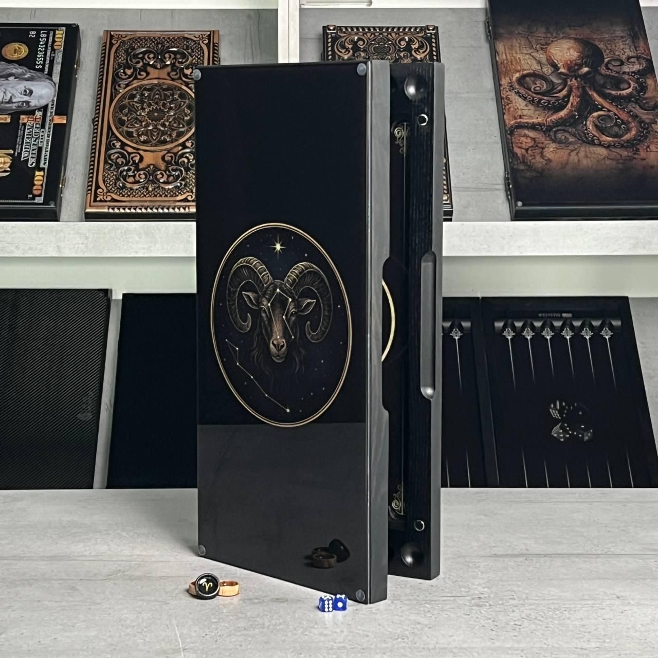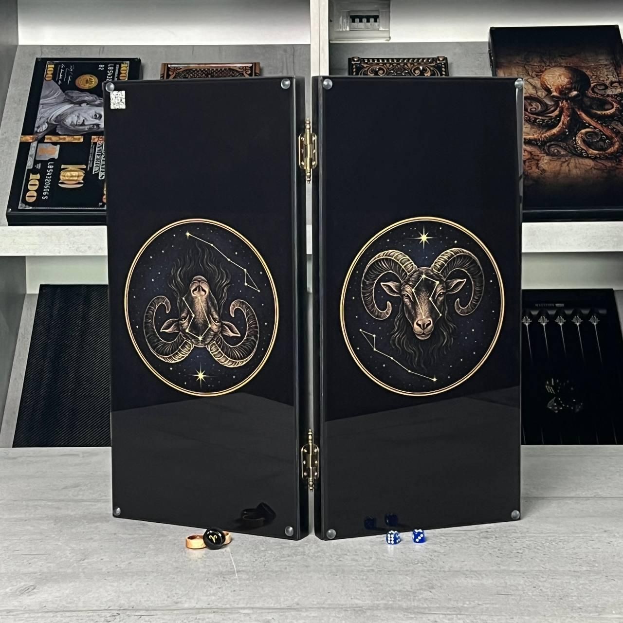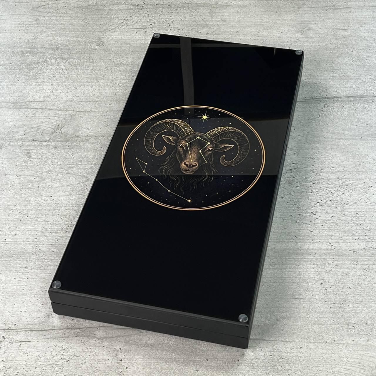 Нарды стеклянные в сочетании с деревом знак зодиака Овен 50 см/60 см 600