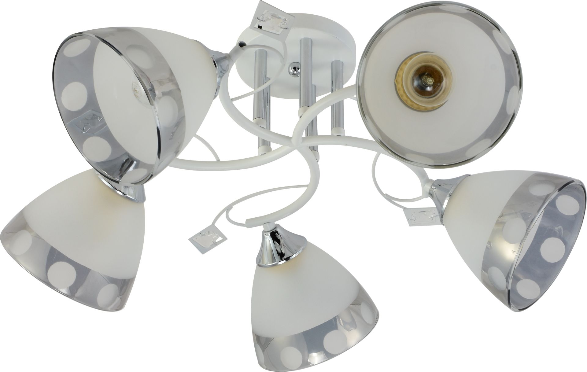 5 матовых стеклянных плафонов с декоративной хромовой полосой