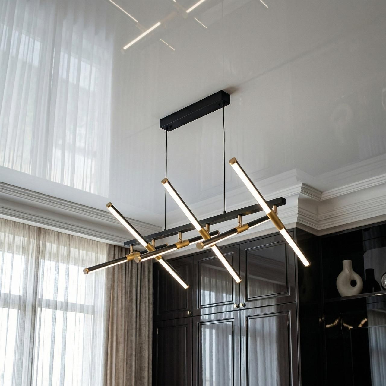 Эта ультрасовременная LED люстра представляет собой динамичную композицию из пересекающихся световых лучей. Благодаря оригинальному дизайну в стиле деконструктивнизма и мощности 78 Вт, модель становится не просто источником света, а доминирующим арт-объектом, который идеально подходит для современных жилых и офисных интерьеров.