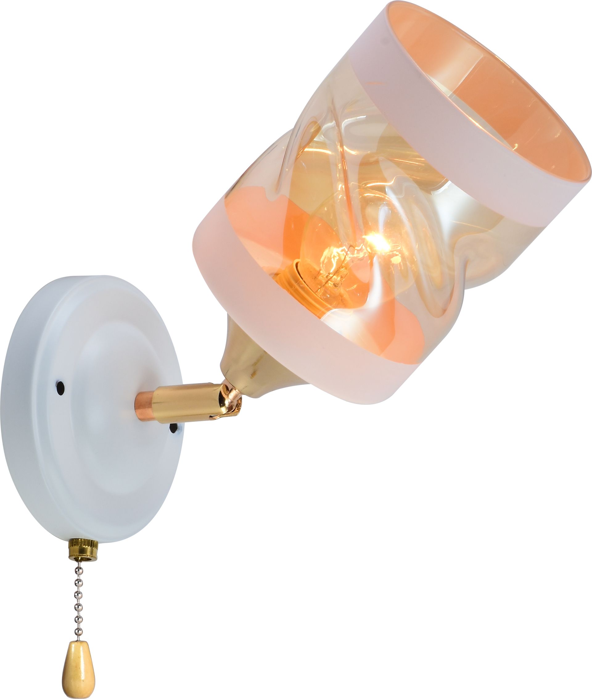 Прозрачный стеклянный плафон с широкими белоснежными полосками выглядит стильно и воздушно, мягко рассеивая свет и создавая приятную атмосферу. Особенностью модели является поворотный механизм плафона, позволяющий легко изменять направление света для максимального комфорта в ежедневном использовании.