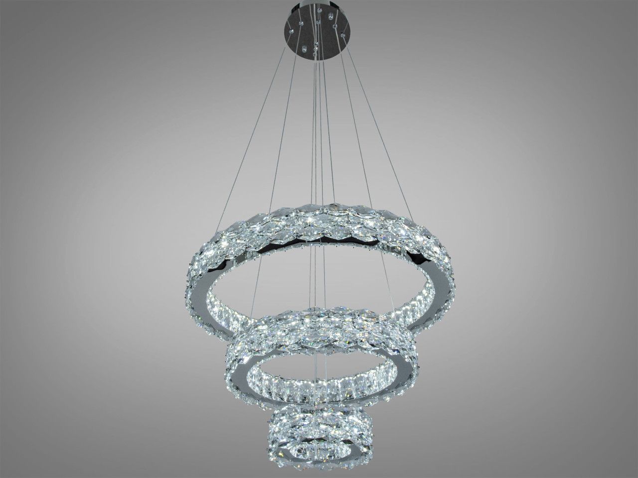 Светодиодная LED люстра Тройное Кольцо SMART — Chrome Crystal Tier — 70W — Хром (57/40/20 см)