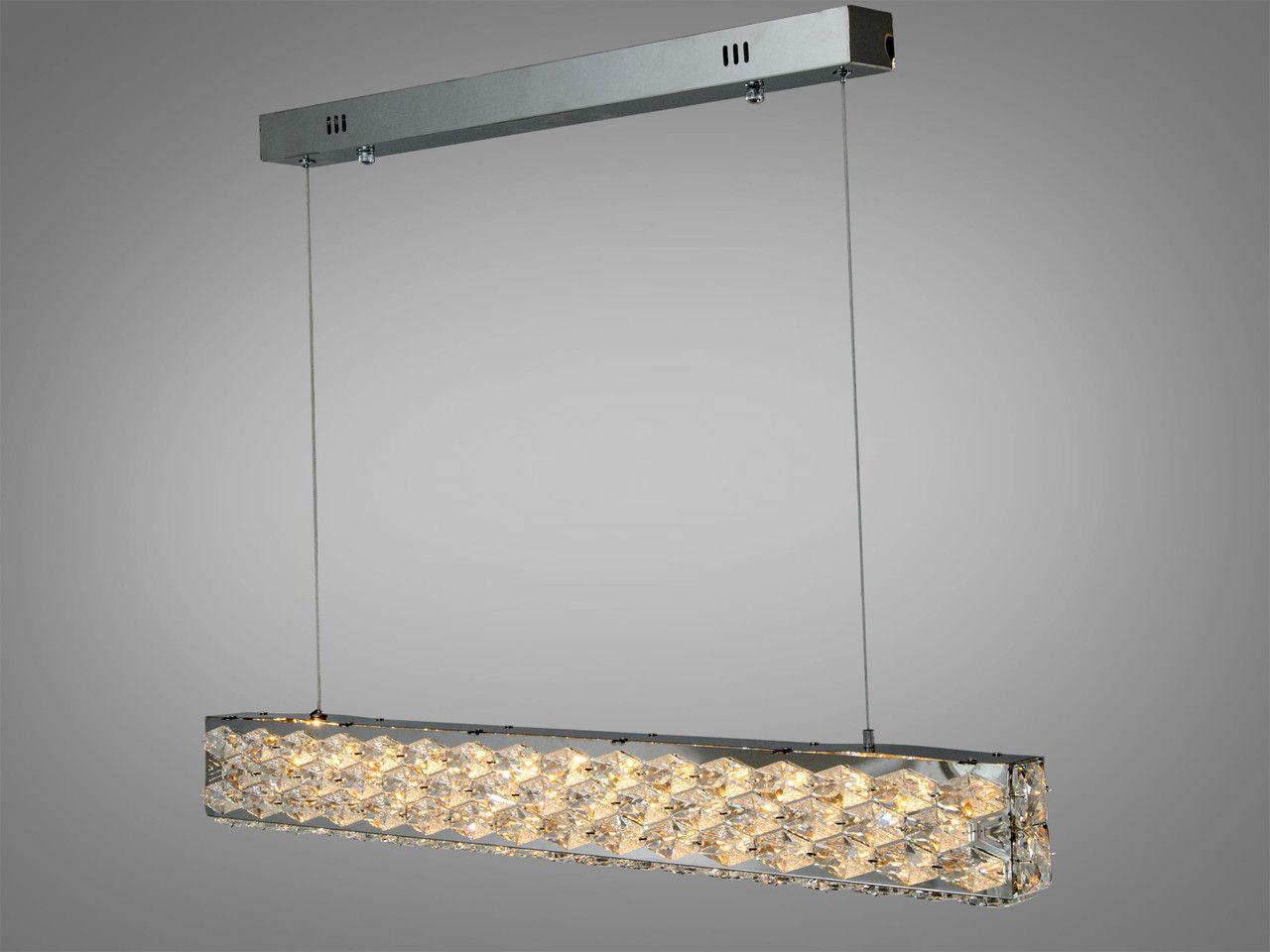 Эта статусная линейная люстра в цвете «зеркальный хром» создана для акцентного освещения современных интерьеров. Сочетание холодного металлического блеска и плотного массива граненного хрусталя мощностью 68 Вт обеспечивает интенсивное и многогранное освещение вытянутых зон, превращая светильник в главный технологичный акцент помещения.