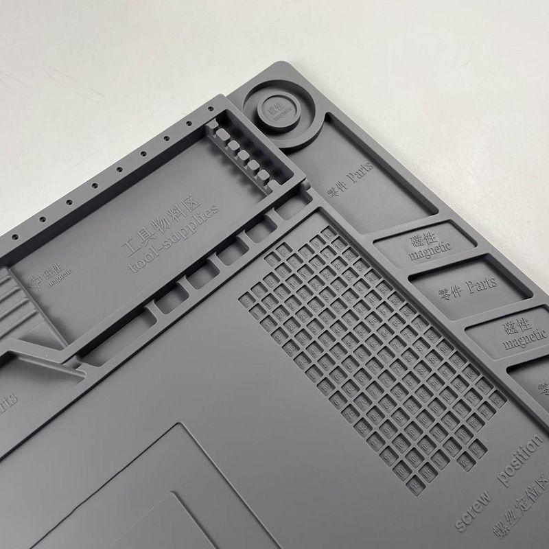 Изделие выполнено из мягкого, прочного и нетоксичного силикона, который устойчив к высоким температурам, не скользит и не деформируется при длительном использовании. Коврик идеально подходит как для сервисных центров, так и для домашних мастерских.