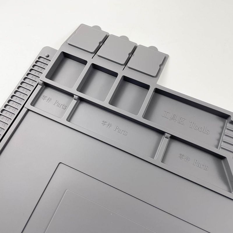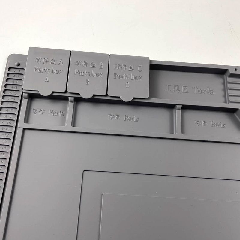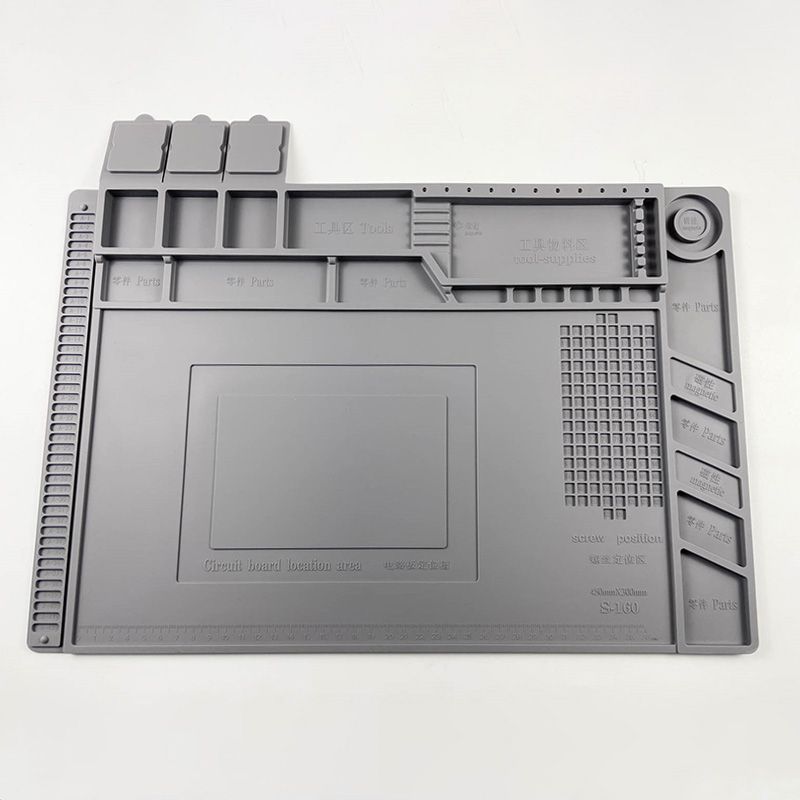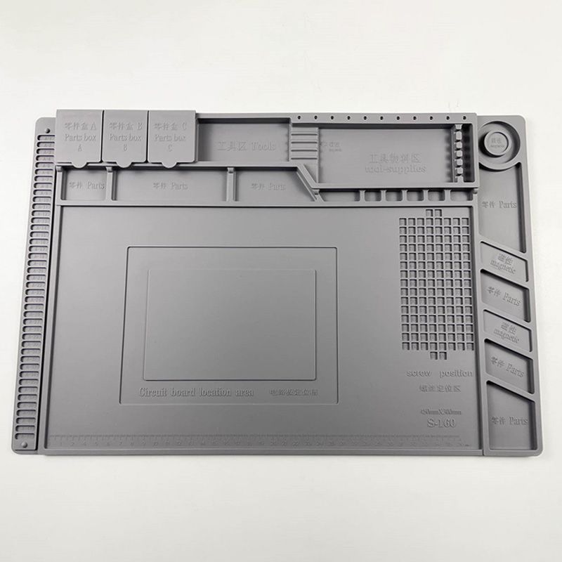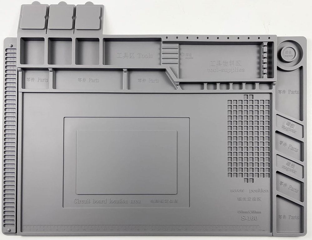 Антистатический силиконовый коврик Kaisi S-160 — это профессиональный аксессуар для ремонта электроники и пайки, предназначенный для организации рабочего места и защиты поверхности стола. Благодаря продуманной конструкции с множеством отсеков и высокой термостойкости, этот коврик значительно упрощает процесс ремонта и повышает его безопасность.
